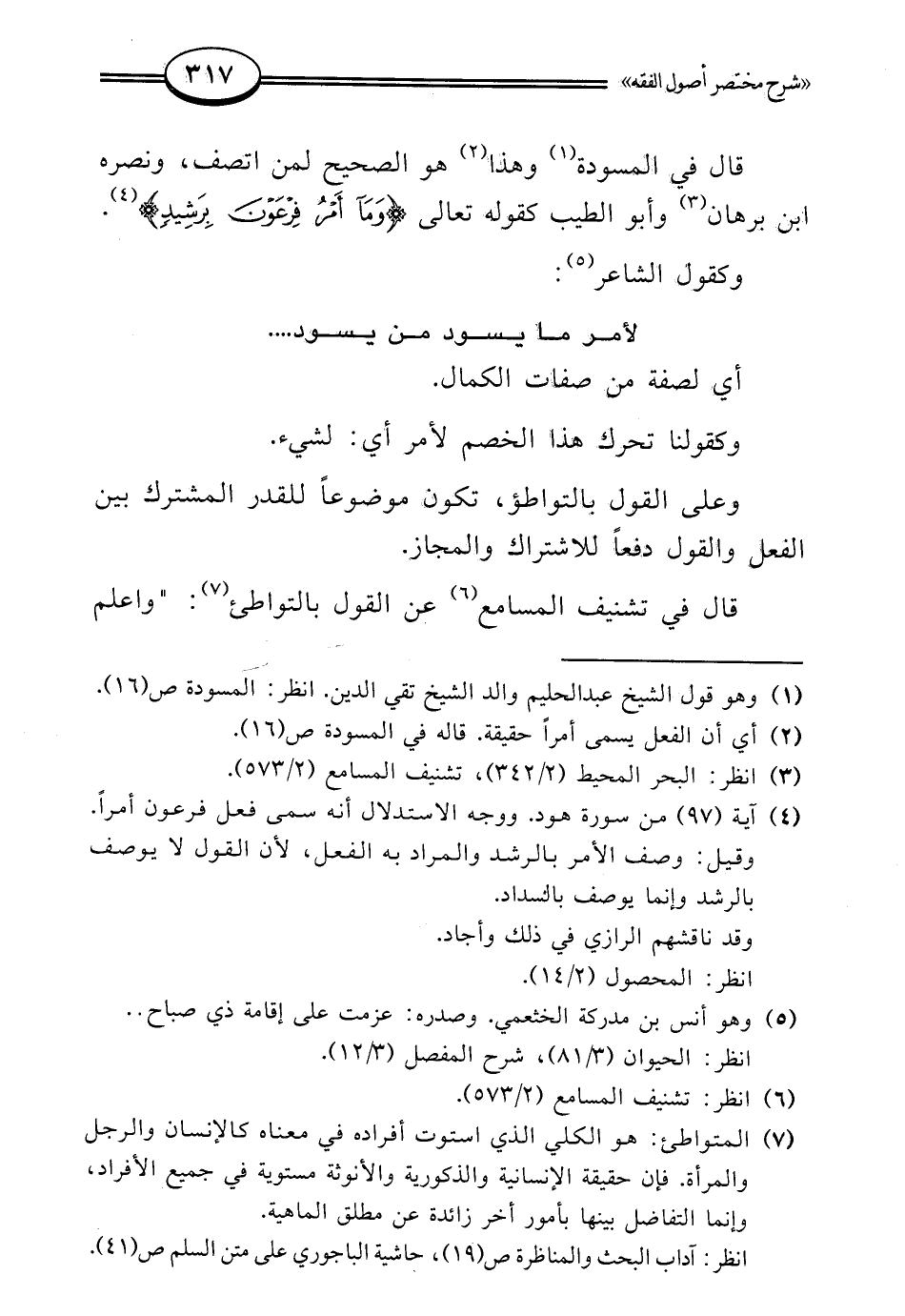 (¬4) آية (97) من سورة هود. ووجه الاستدلال أنه سمى فعل فرعون أمرًا. وقيل: وصف الأمر بالرشد والمراد به الفعل، لأن القول لا يوصف بالرشد وإنما يوصف بالشداد.