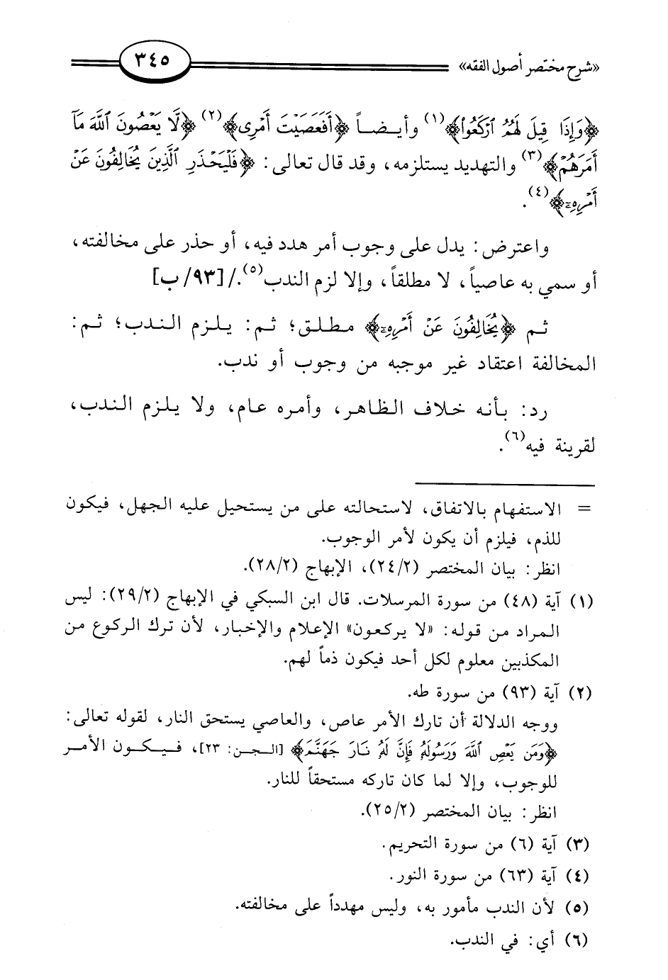 (¬5) لأن الندب مأمور به، وليس مهددًا على مخالفته.