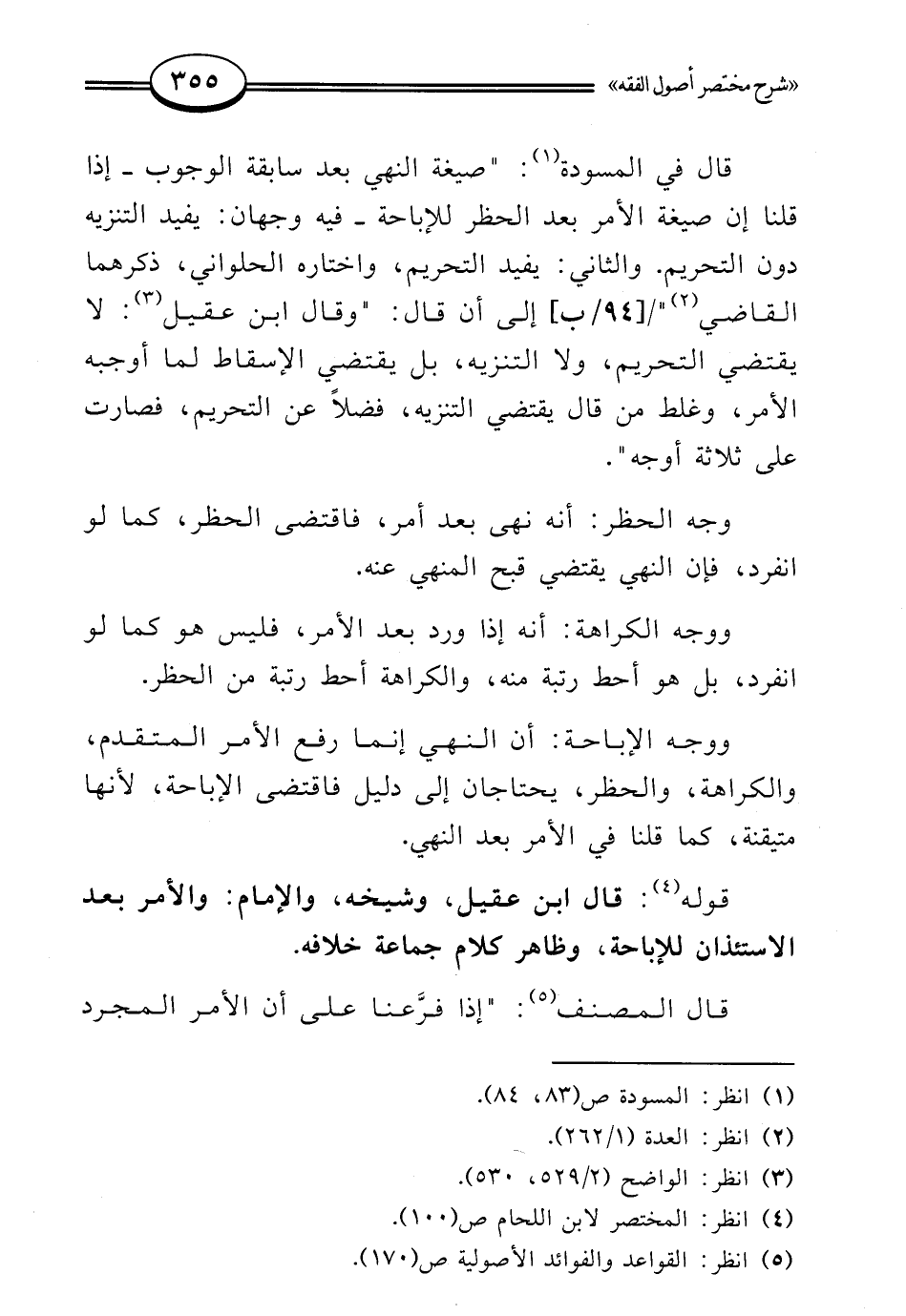 (¬5) انظر: القواعد والفوائد الأصولية ص (170).