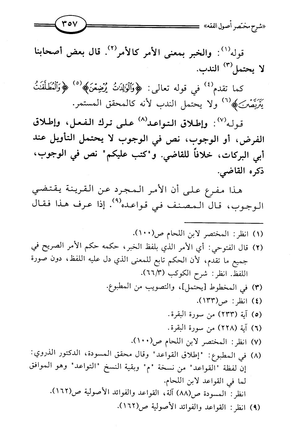 (¬9) انظر: القواعد والفوائد الأصولية ص (162).
