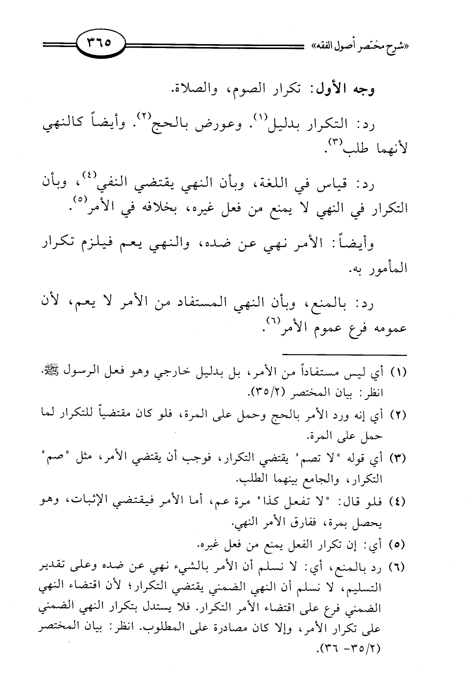 (¬6) رد بالمنع، أي: لا نسلم أن الأمر بالشيء نهي عن ضده وعلى تقدير التسليم، لا نسلم أن النهي الضمني يقتضي التكرار؛ لأن اقتضاء النهي الضمني فرع على اقتضاء الأمر التكرار. فلا يستدل بتكرار النهي الضمني على تكرار الأمر، وإلا كان مصادرة على المطلوب. انظر: بيان المختصر (2/ 35 - 36).