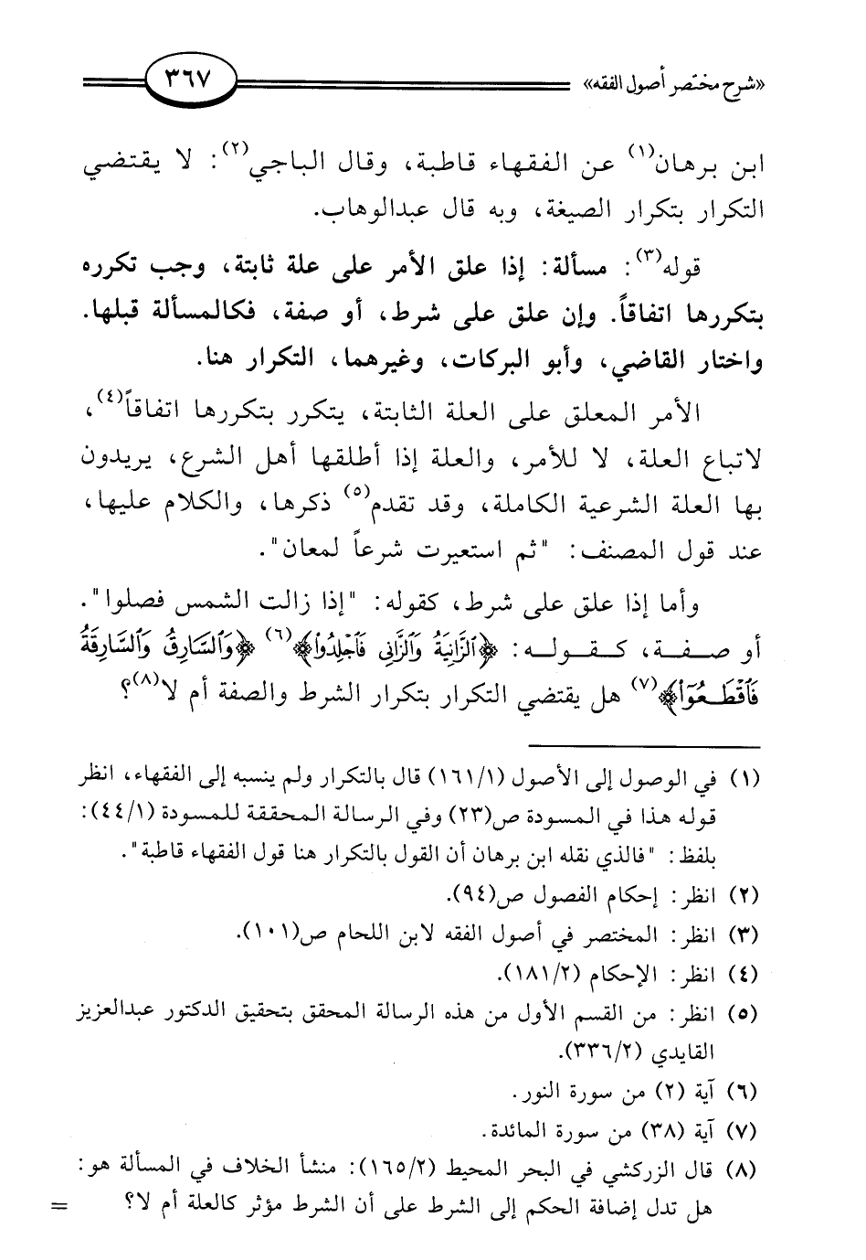 (¬1) في الوصول إلى الأصول (1/ 161) قال بالتكرار ولم ينسبه إلى الفقهاء، انظر قوله هذا في المسودة ص (23) وفي الرسالة المحققة للمسودة (1/ 44): بلفظ: "فالذي نقله ابن برهان أن القول بالتكرار هنا قول الفقهاء قاطبة".