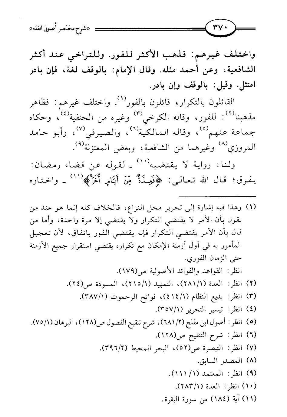 (¬7) انظر: التبصرة ص (52)، البحر المحيط (2/ 396).