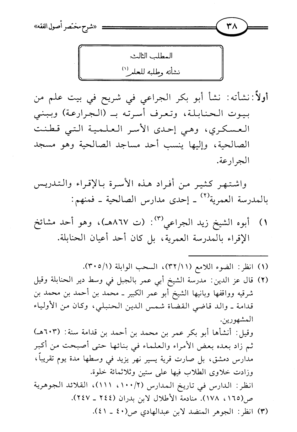 1) أبوه الشيخ زيد الجراعي (¬3): (ت 867 هـ)، وهو أحد مشائخ الإقراء بالمدرسة العمرية، بل كان أحد أعيان الحنابلة.