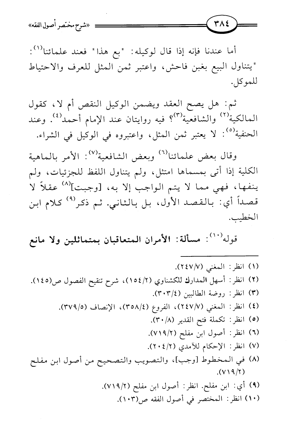 (¬10) انظر: المختصر في أصول الفقه ص (103).
