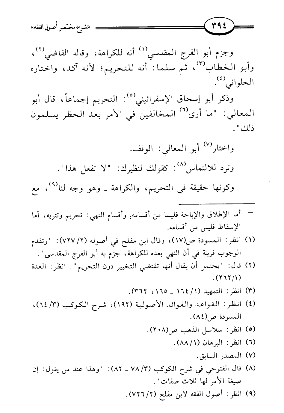 (¬9) انظر: أصول الفقه لابن مفلح (2/ 726).