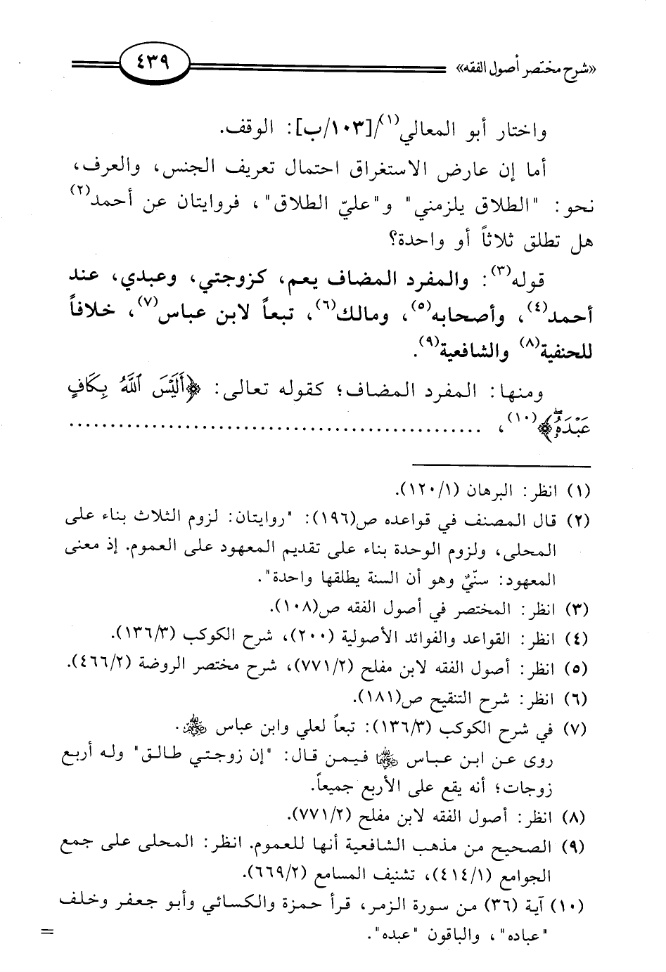 قوله (¬3): والمفرد المضاف يعم، كزوجتي، وعبدي، عند أحمد (¬4)، وأصحابه (¬5)، ومالك (¬6)، تبعًا لابن عباس (¬7)، خلافًا للحنفية (¬8) والشافعية (¬9).