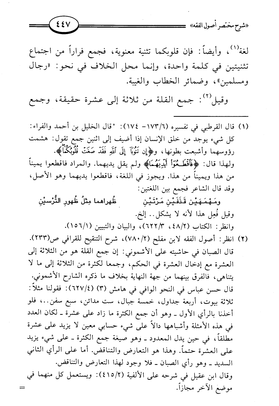 (¬2) انظر: أصول الفقه لابن مفلح (2/ 780)، شرح التنقيح للقرافي ص (233).