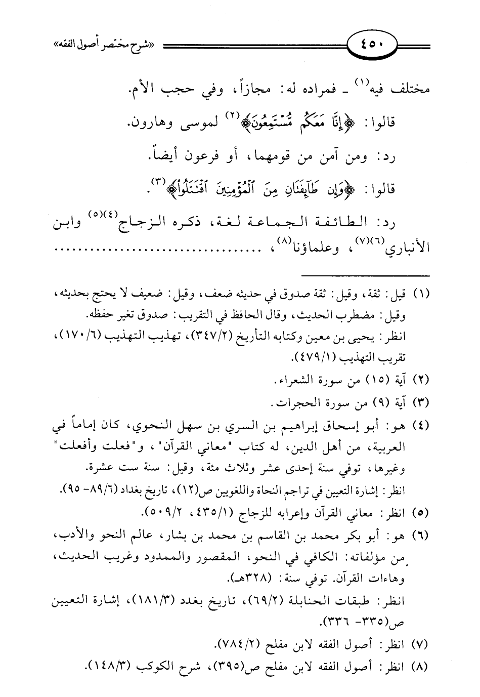 (¬8) انظر: أصول الفقه لابن مفلح ص (395)، شرح الكوكب (3/ 148).