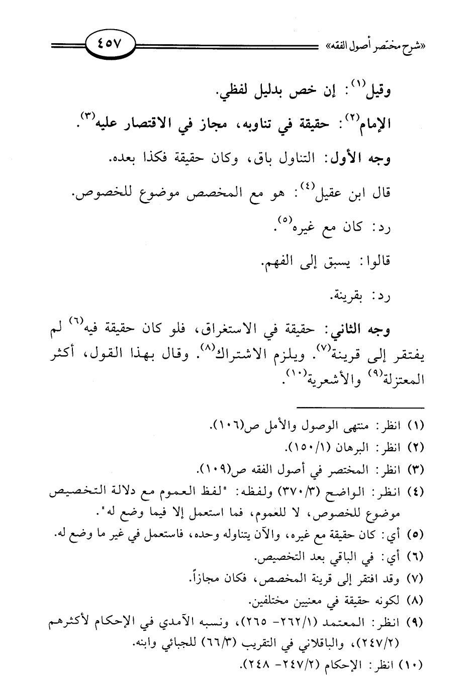 (¬9) انظر: المعتمد (1/ 262 - 265)، ونسبه الآمدي في الإحكام لأكثرهم (2/ 247)، والباقلاني في التقريب (3/ 66) للجبائي وابنه.