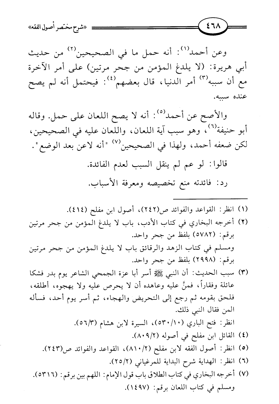 (¬1) انظر: القواعد والفوائد ص (242)، أصول ابن مفلح (414).