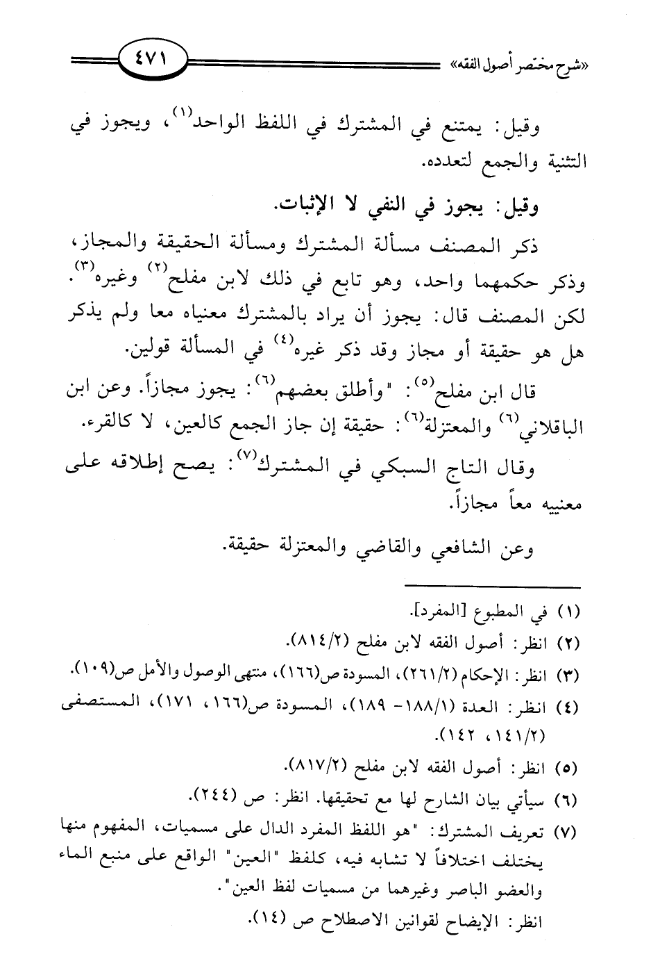 (¬5) انظر: أصول الفقه لابن مفلح (2/ 817).