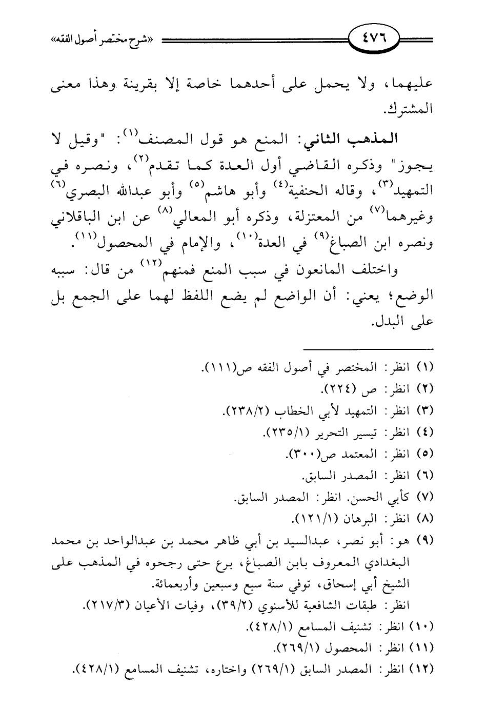 (¬1) انظر: المختصر في أصول الفقه ص (111).