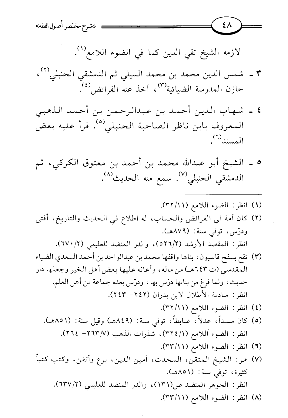 3 - شمس الدين محمد بن محمد السيلي ثم الدمشقي الحنبلي (¬2)، خازن المدرسة الضيائية (¬3)، أخذ عنه الفرائض (¬4).