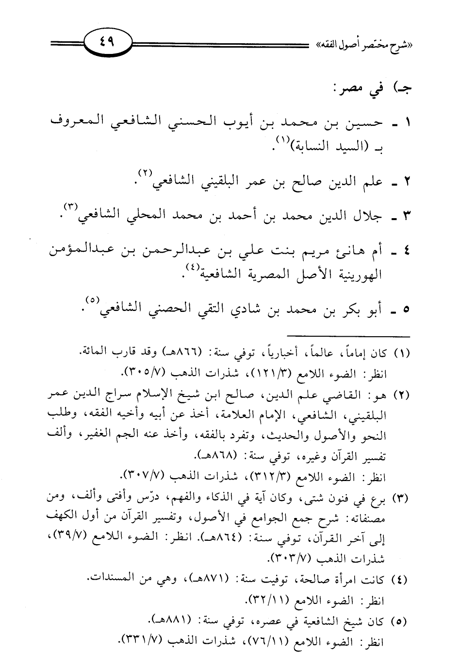 (¬3) برع في فنون شتى، وكان آية في الذكاء والفهم، درّس وأفتى وألف، ومن مصنفاته: شرح جمع الجوامع في الأصول، وتفسير القرآن من أول الكهف إلى آخر القرآن، توفي سنة: (864 هـ). انظر: الضوء اللامع (7/ 39)، شذرات الذهب (7/ 303).