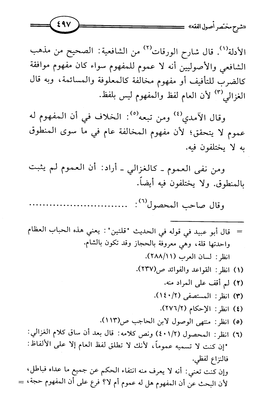 (¬5) انظر: منتهى الوصول لابن الحاجب ص (113).