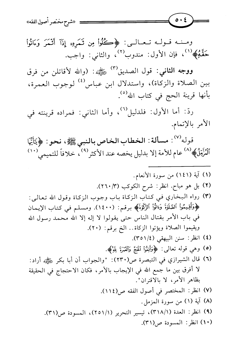 (¬7) انظر: المختصر في أصول الفقه ص (114).
