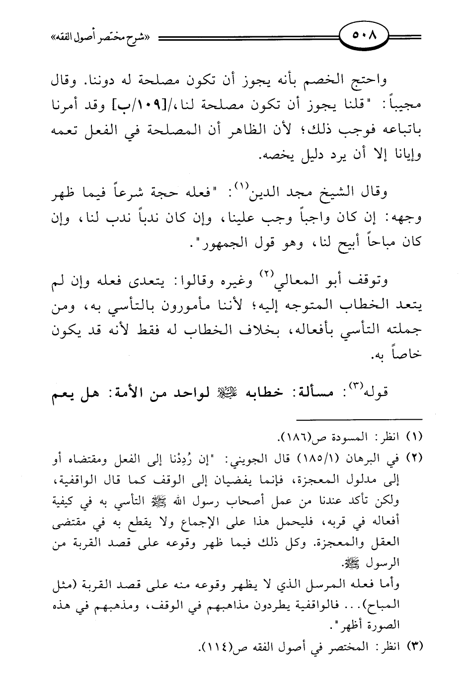 (¬3) انظر: المختصر في أصول الفقه ص (114).