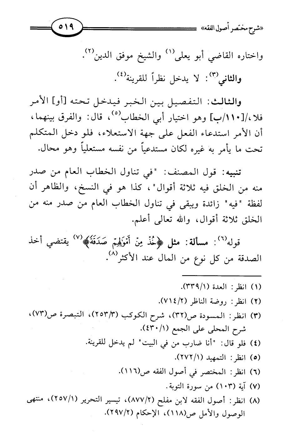(¬6) انظر: المختصر في أصول الفقه ص (116).