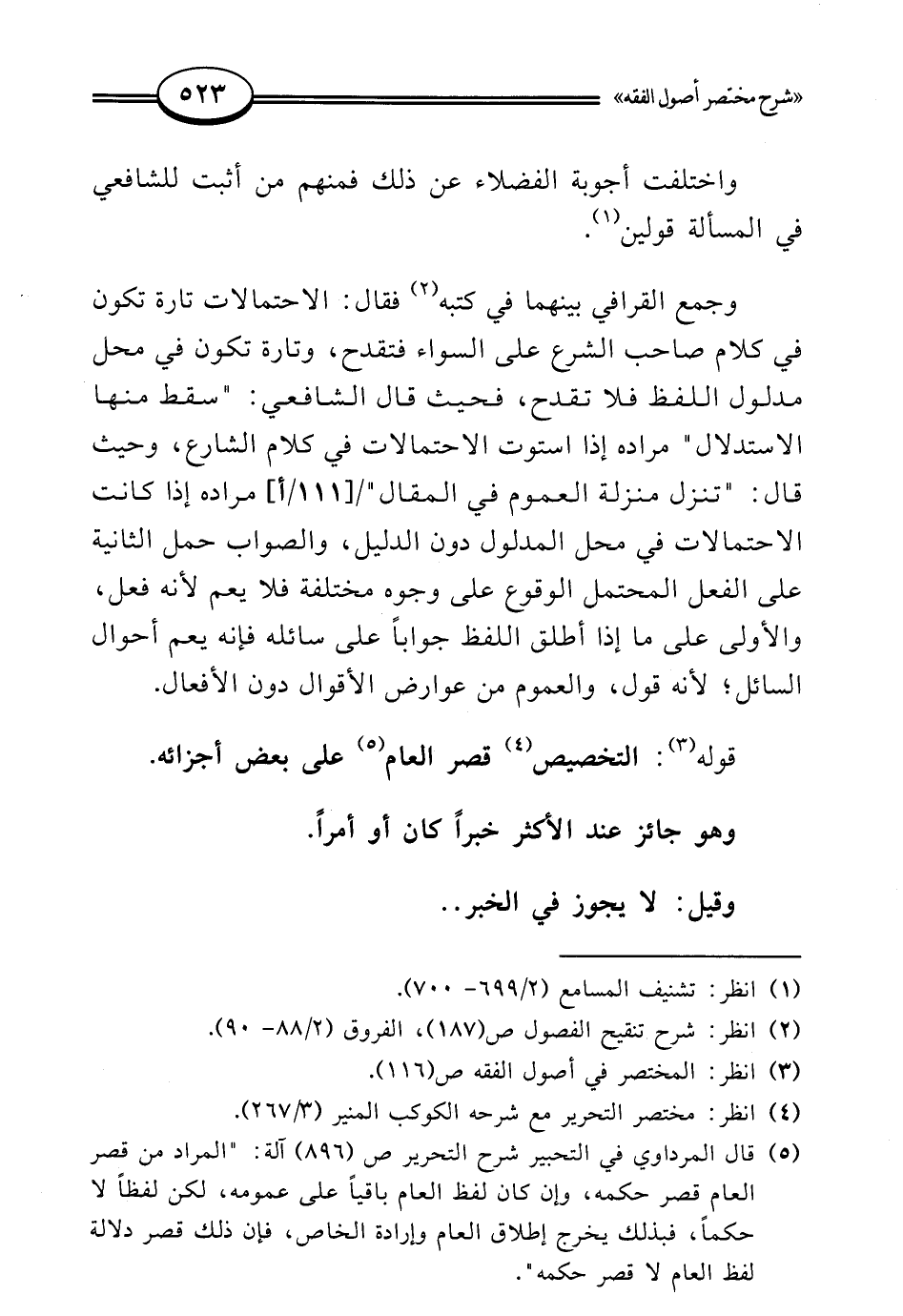 (¬4) انظر: مختصر التحرير مع شرحه الكوكب المنير (3/ 267).