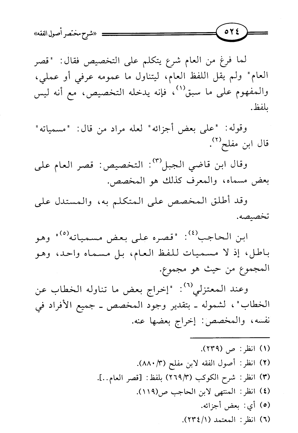 (¬3) انظر: شرح الكوكب (3/ 269) بلفظ: [قصر العام .. ].