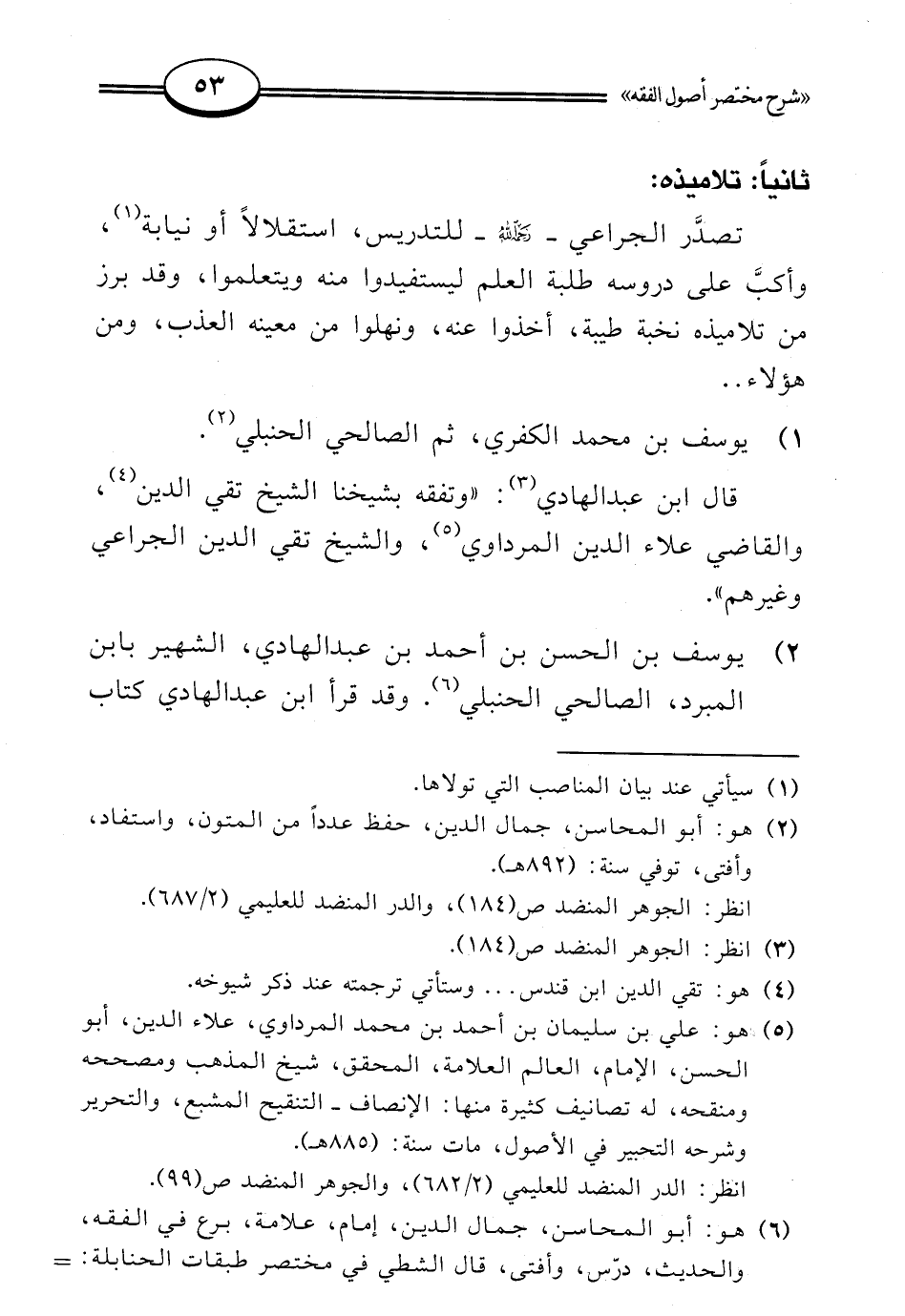(¬6) هو: أبو المحاسن، جمال الدين، إمام، علامة، برع في الفقه، والحديث، درّس، وأفتى، قال الشطي في مختصر طبقات الحنابلة: =