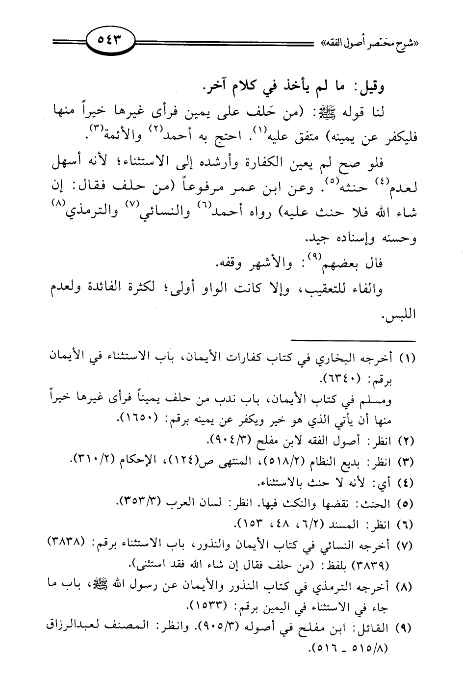 (¬8) أخرجه الترمذي في كتاب النذور والأيمان عن رسول الله - صلى الله عليه وسلم -، باب ما جاء في الاستثناء في اليمين برقم: (1533).