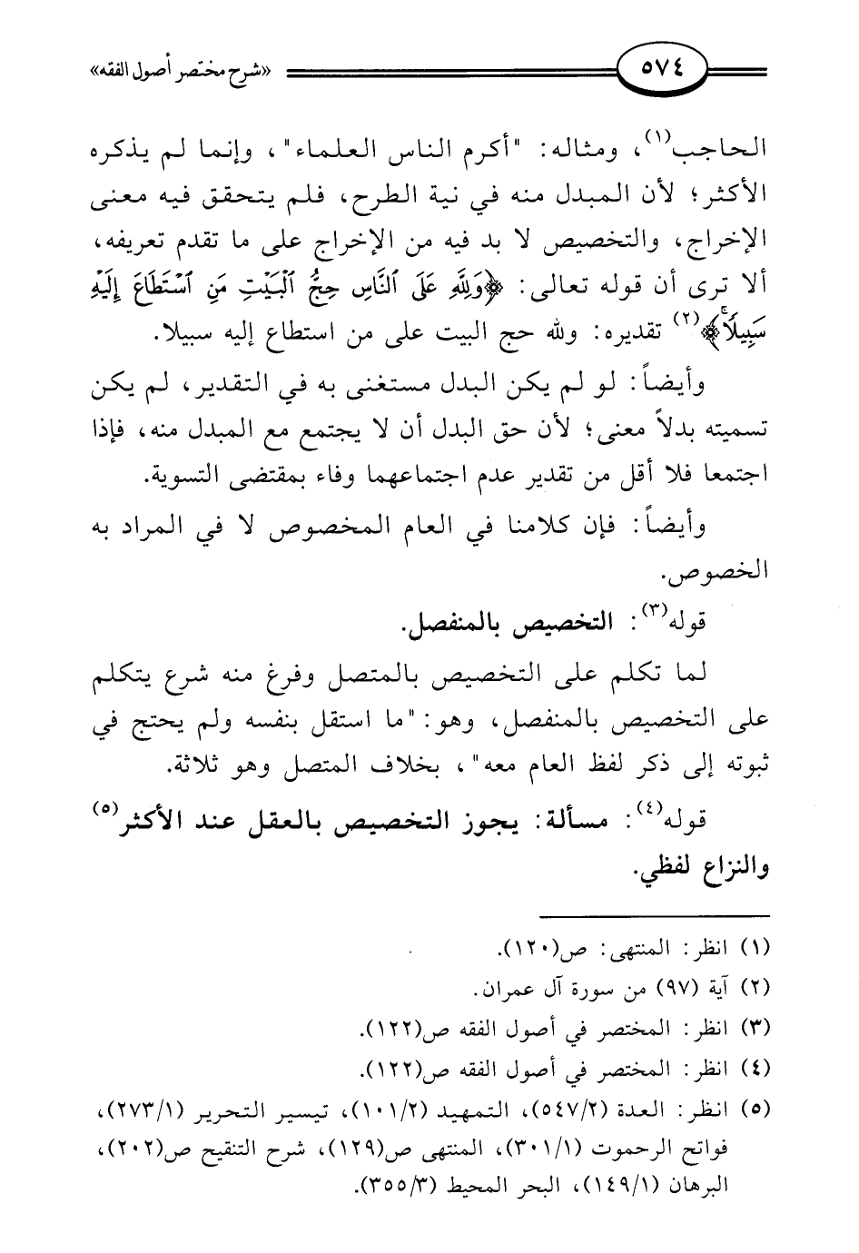 (¬5) انظر: العدة (2/ 547)، التمهيد (2/ 101)، تيسير التحرير (1/ 273)، فواتح الرحموت (1/ 301)، المنتهى ص (129)، شرح التنقيح ص (202)، البرهان (1/ 149)، البحر المحيط (3/ 355).