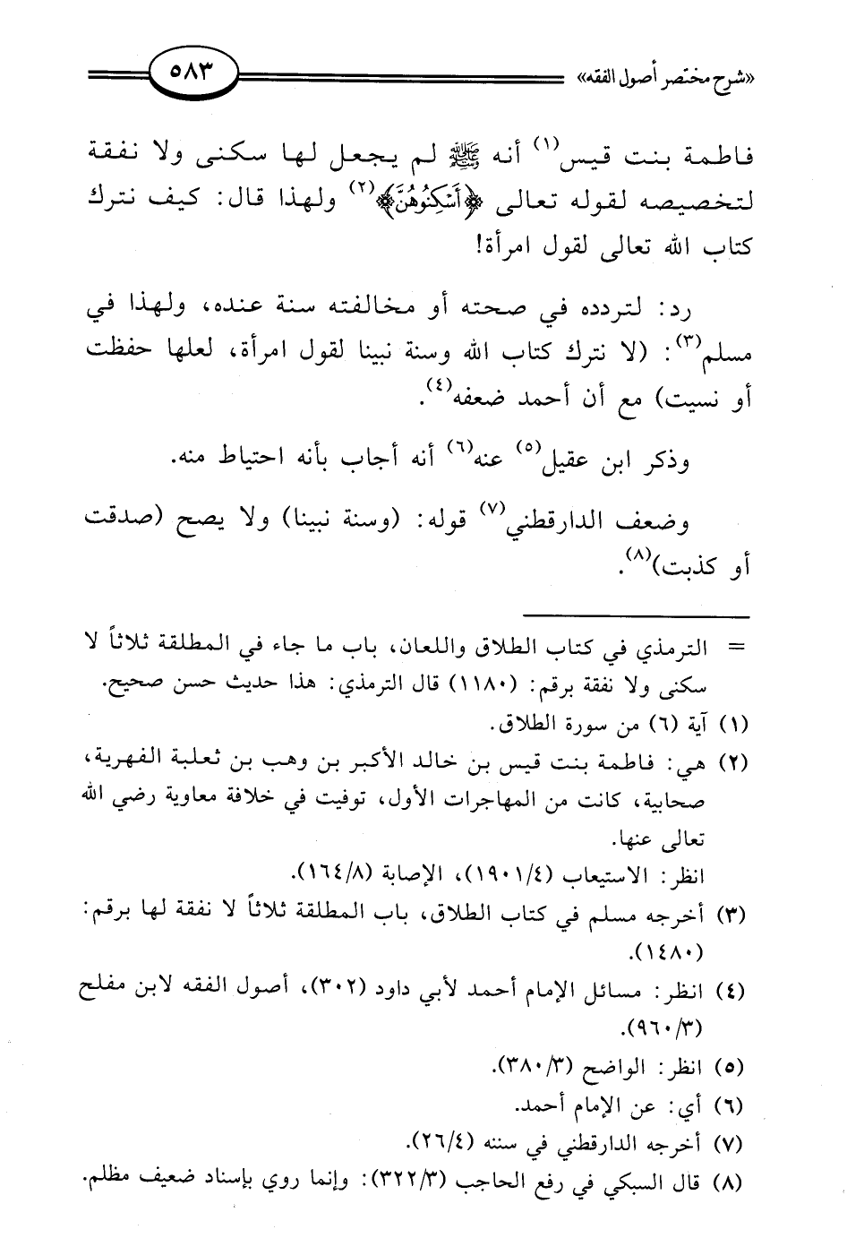 (¬4) انظر: مسائل الإمام أحمد لأبي داود (302)، أصول الفقه لابن مفلح (3/ 960).