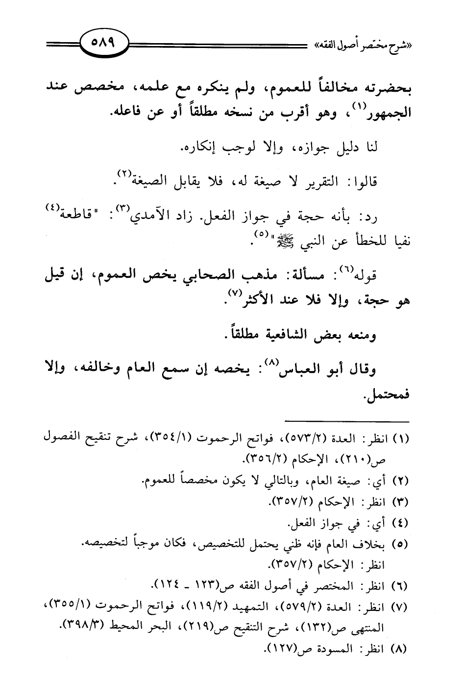 (¬7) انظر: العدة (2/ 579)، التمهيد (2/ 119)، فواتح الرحموت (1/ 355)، المنتهى ص (132)، شرح التنقيح ص (219)، البحر المحيط (3/ 398).