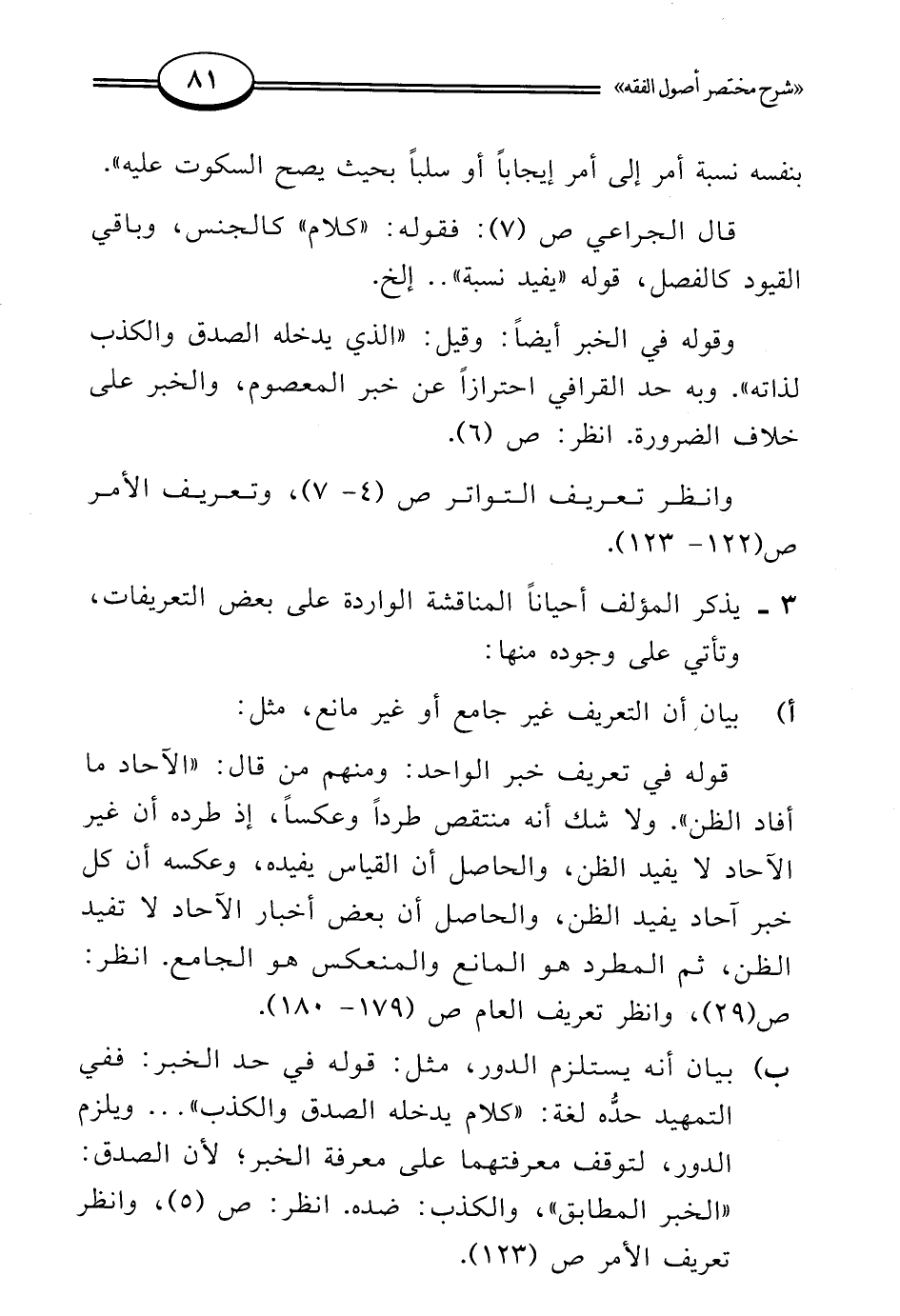 وانظر تعريف التواتر ص (4 - 7)، وتعريف الأمر ص (122 - 123).