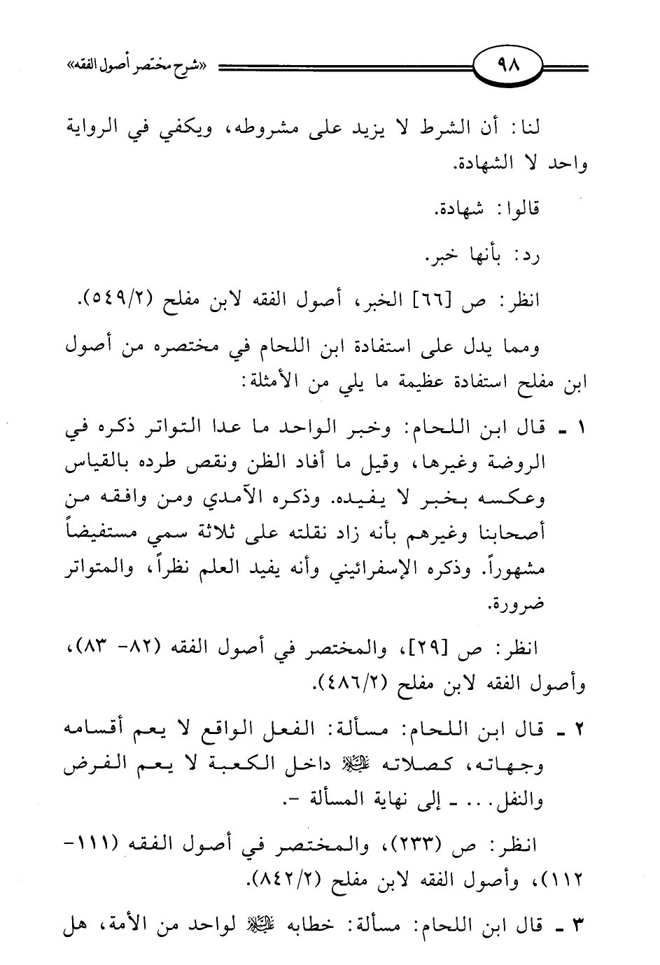 ومما يدل على استفادة ابن اللحام في مختصره من أصول ابن مفلح استفادة عظيمة ما يلي من الأمثلة: