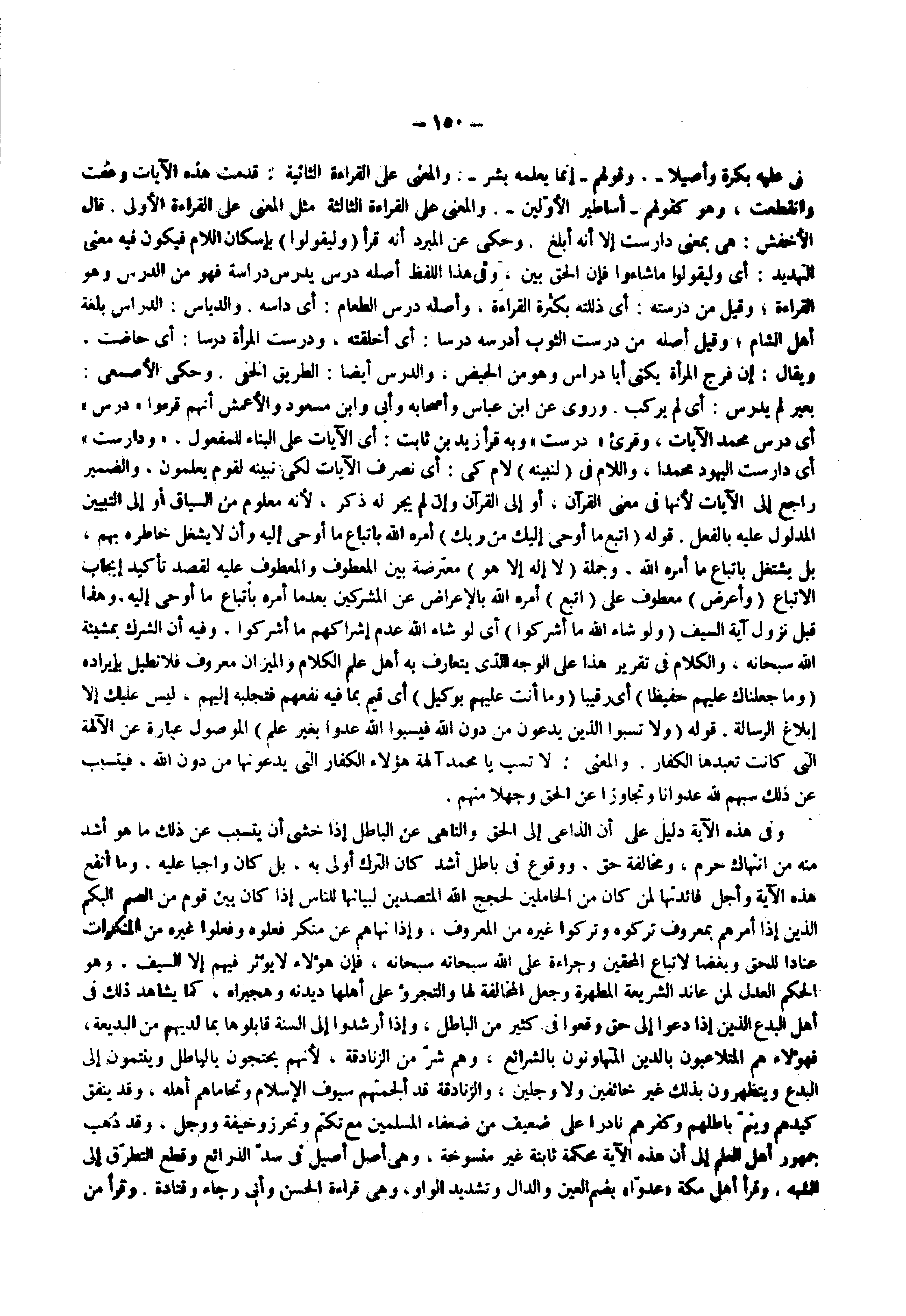 وقولهم ) إنما يعلمه بشر ( والمعنى على القراءة الثانية قدمت هذه الآيات وعفت وانقطعت وهو كقولهم ) أساطير الأولين ( والمعنى على القراءة الثالثة مثل المعنى على القراءة الأولى قال الأخفش هى بمعنى دارست إلا أنه أبلغ وحكى عن المبرد أنه قرأ ) وليقولوا ( بإسكان اللام فيكون فيه معنى التهديد أي وليقولوا ما شاءوا فإن الحق بين وفى هذا اللفظ أصله درس يدرس دراسة فهو من الدرس وهو القراءة وقيل من درسته أي ذللته بكثرة القراءة وأصله درس الطعام أي داسه والدياس الدارس بلغة أهل الشام وقيل أصله من درست الثوب أدرسه درسا أي أخلقته ودرست المرأة درسا أي حاضت ويقال إن فرج المرأة يكنى أبا دراس وهو من الحيض والدرس أيضا الطريق الخفي وحكى الأصمعي بعير لم يدرس أي لم يركب وروى عن ابن عباس وأصحابه وأبي وابن مسعود والأعمش أنهم قرءوا درس أي درس محمد الآيات وقرئ ) درست ( وبه قرأ زيد بن ثابت أي الآيات على البناء للمفعول ودارست أي دارست اليهود محمدا واللام فى ? لنبينه ? لام كي أي نصرف الآيات لكي نبينه لقوم يعلمون والضمير راجع إلى الآيات لأنها فى معنى القرآن أو إلى القرآن وإن لم يجر له ذكر لأنه معلوم من السياق أو إلى التبيين المدلول عليه بالفعل
