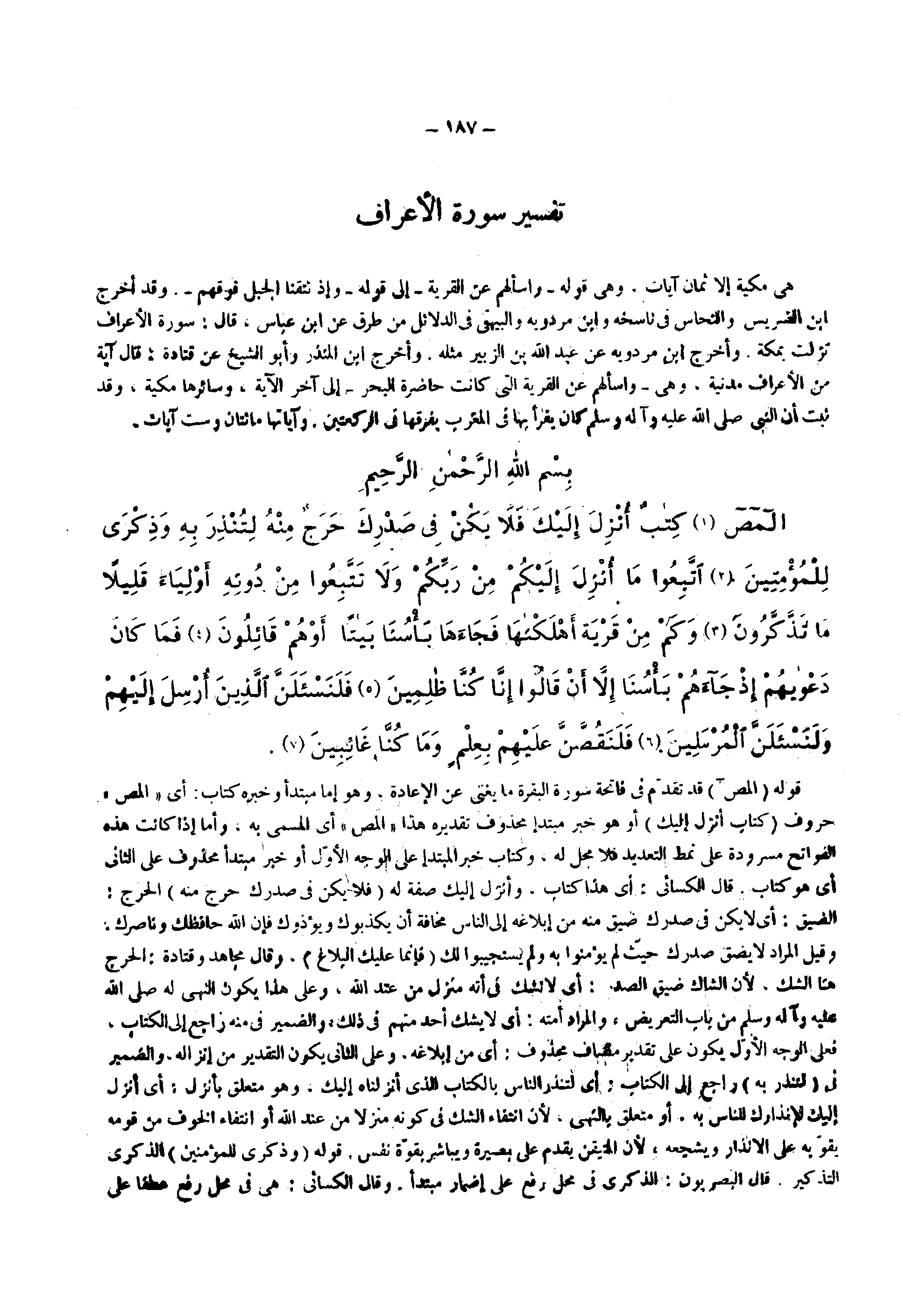 الأعراف : ( 2 ) كتاب أنزل إليك . . . . .