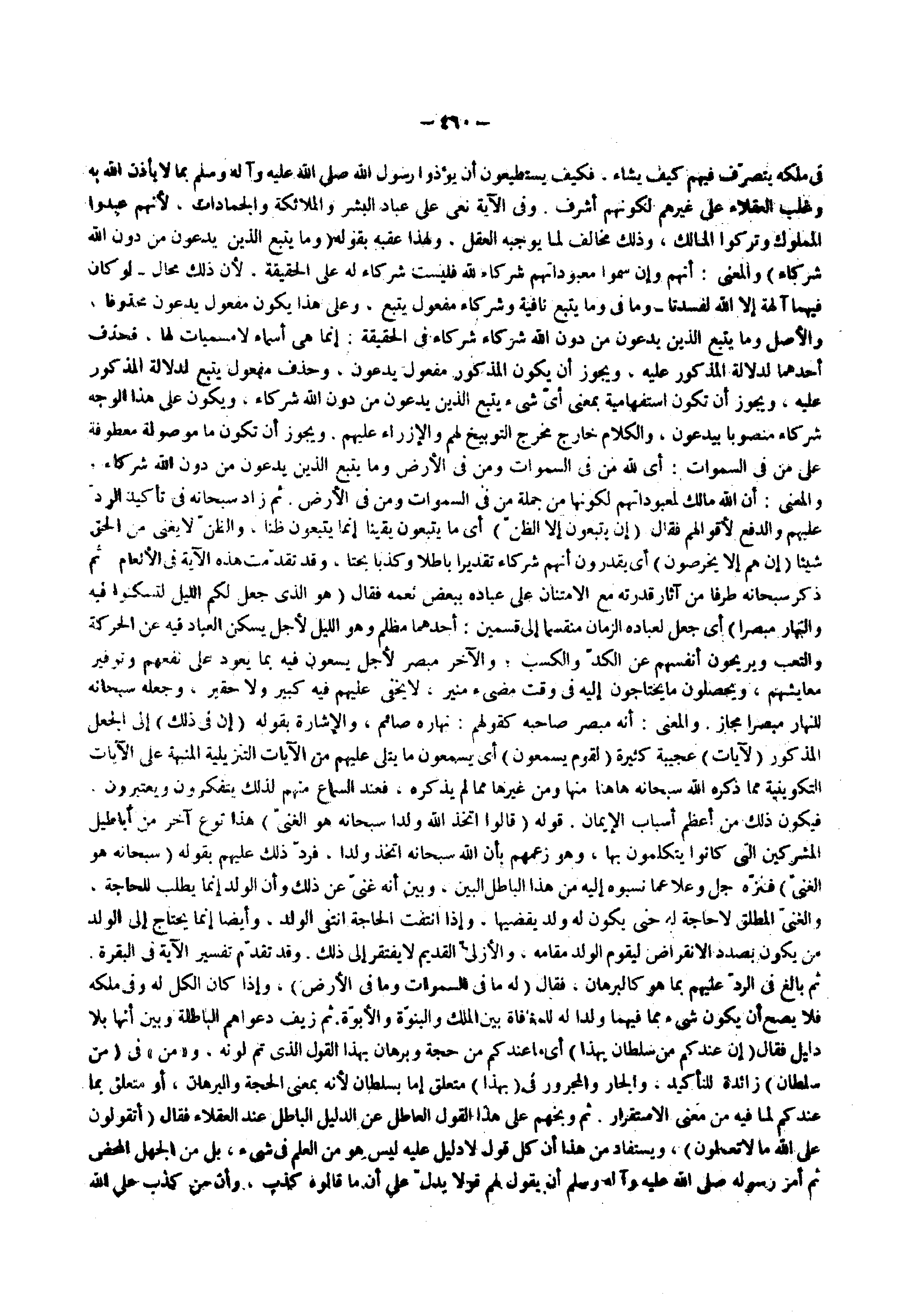 والغني المطلق لا حاجة له حتى يكون له ولد يقضيها وإذا انتفت الحاجة انتفى الولد وأيضا إنما يحتاج إلى الولد من يكون بصدد الانقراض ليقوم الولد مقامه والأزلي القديم لا يفتقر إلى ذلك وقد تقدم تفسير الآية في البقرة