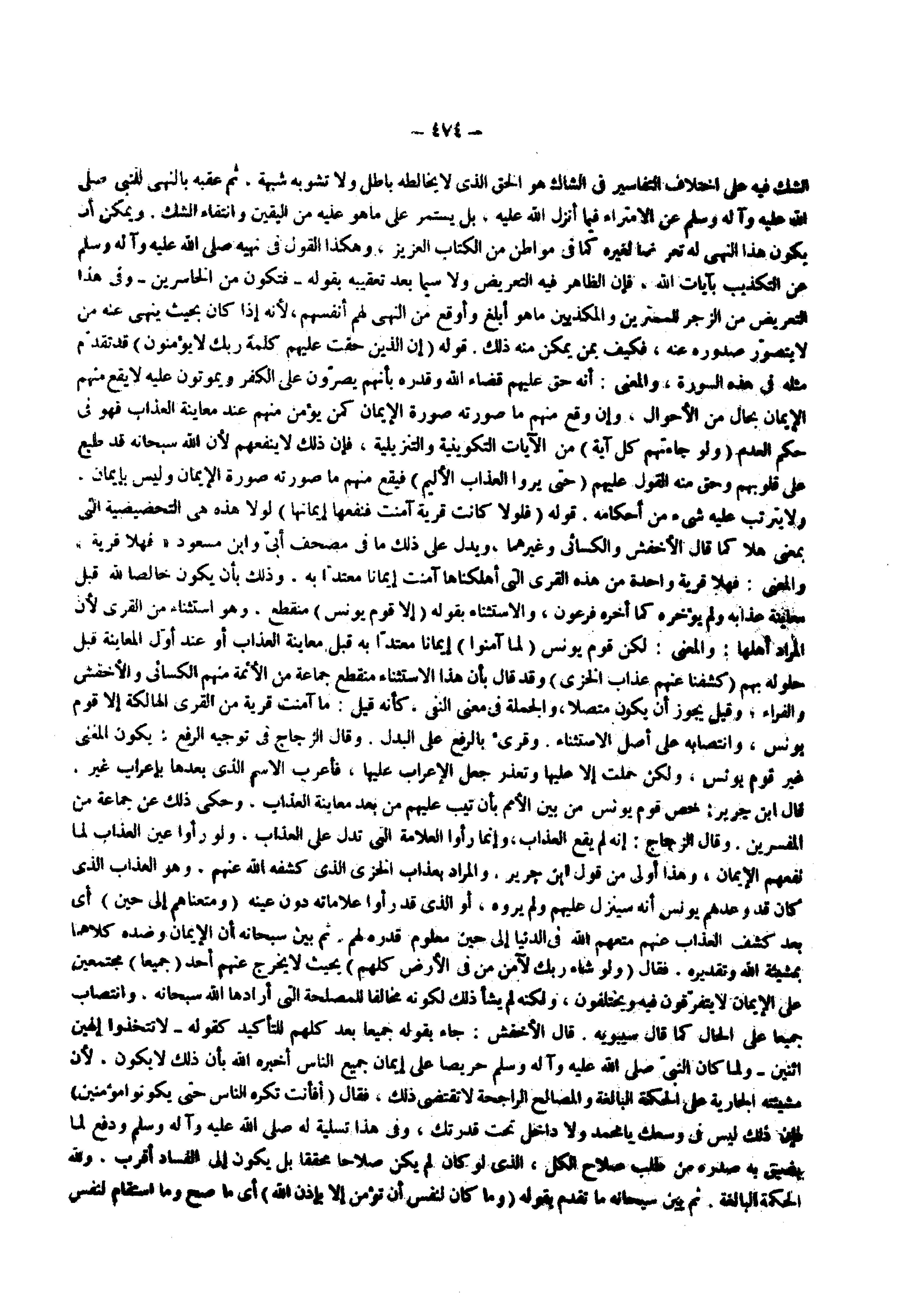 قال ابن جرير خص قوم يونس من بين الأمم بأن تيب عليهم من بعد معاينة العذاب وحكى ذلك عن جماعة من المفسرين وقال الزجاج إنه لم يقع العذاب وإنما رأوا العلامة التى تدل على العذاب ولو رأوا عين العذاب لما نفعهم الإيمان وهذا أولى من قول ابن جرير والمراد بعذاب الخزي الذى كشفة الله عنهم وهو العذاب الذى كان قد وعدهم يونس أنه سينزل عليهم ولم يروه أو الذى قد رأوا علاماته دون عينه ) ومتعناهم إلى حين ( أي بعد كشف العذاب عنهم متعهم الله في الدنيا إلى حين معلوم قدره لهم