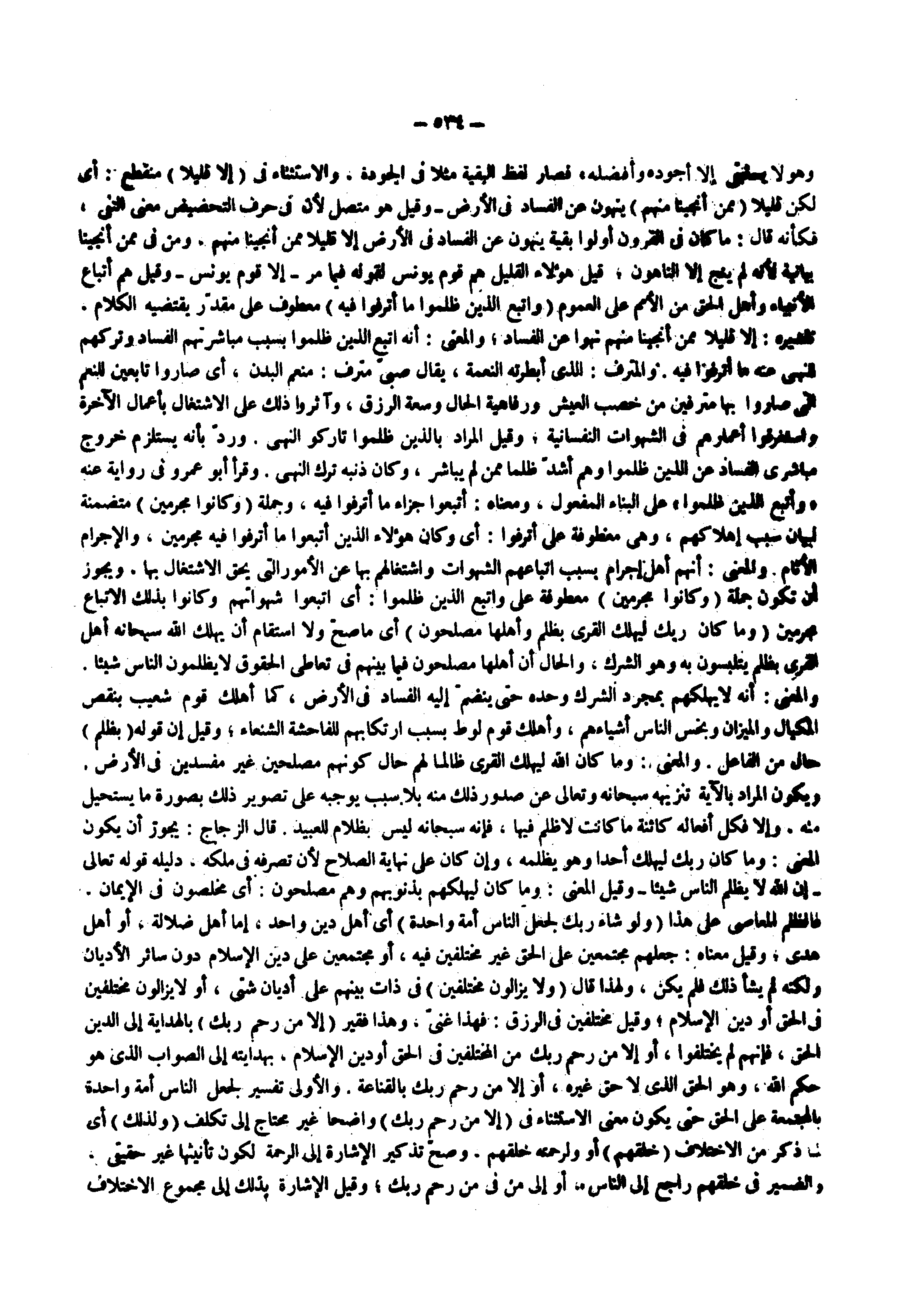 وهو لا يستبقى إلا أجوده وأفضله فصار لفظ البقية مثلا في الجودة والاستثناء في ) إلا قليلا ( منقطع أي لكن قليلا ) ممن أنجينا منهم ( ينهون عن الفساد في الأرض وقيل هو متصل لأن في حرف التحضيض معنى النفي فكأنه قال ما كان في القرون أولوا بقية ينهون عن الفساد في الأرض إلا قليلا ممن أنجينا منهم ومن في ممن أنجينا بيانية لأنه لم ينج إلا الناهون قيل هؤلاء القليل هم قوم يونس لقوله فيما مر ) إلا قوم يونس ( وقيل هم أتباع الأنبياء وأهل الحق من الأمم على العموم ) واتبع الذين ظلموا ما أترفوا فيه ( معطوف على مقدر يقتضيه الكلام