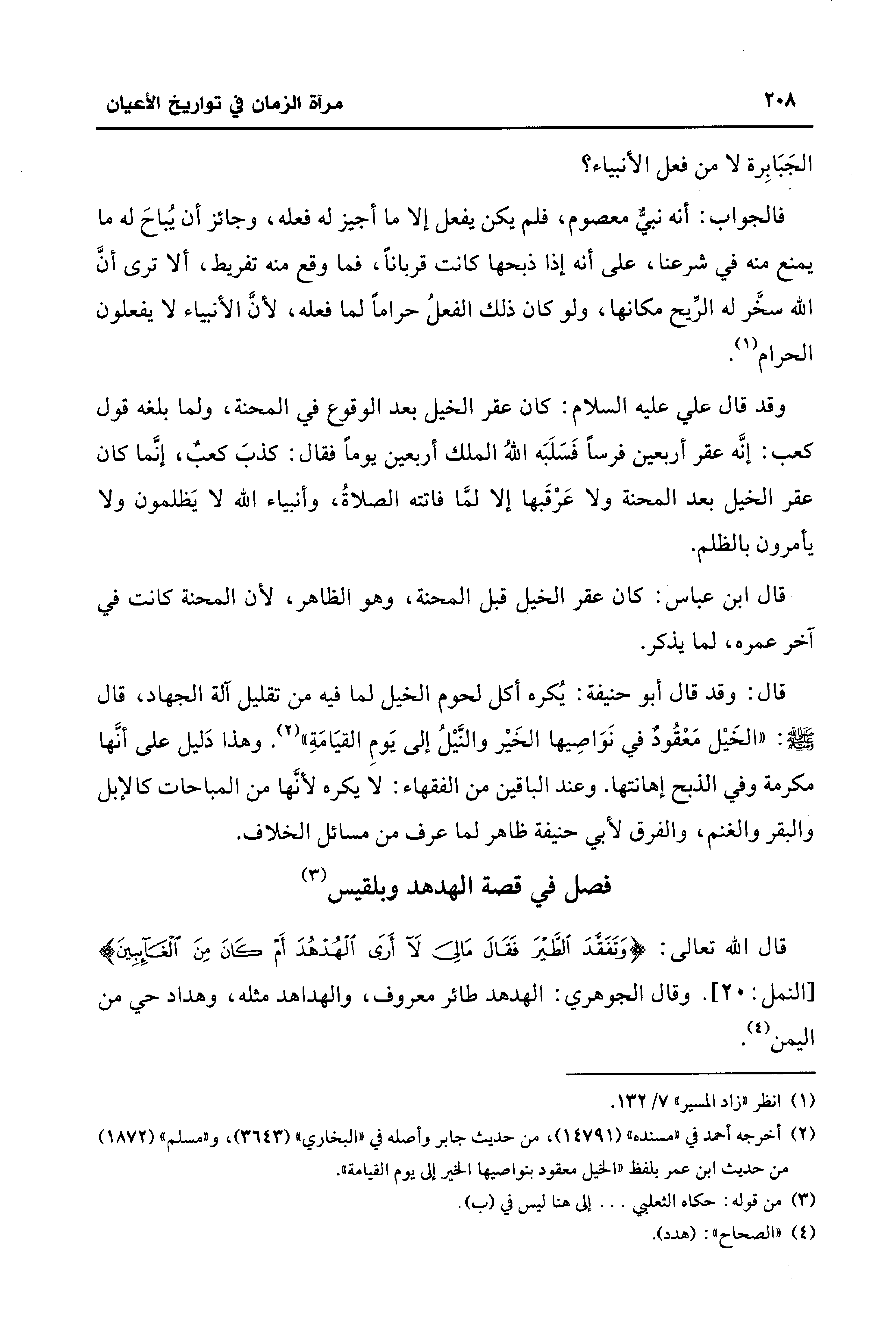 فالجواب: أنه نبيٌّ معصوم، فلم يكن يفعل إلا ما أجيز له فعله، وجائز أن يُباحَ له ما يمنع منه في شرعنا، على أنه إذا ذبحها كانت قربانًا، فما وقع منه تفريط، ألا ترى أنَّ الله سخَّر له الرِّيح مكانها، ولو كان ذلك الفعلُ حرامًا لما فعله، لأنَّ الأنبياء لا يفعلون الحرام (¬1).