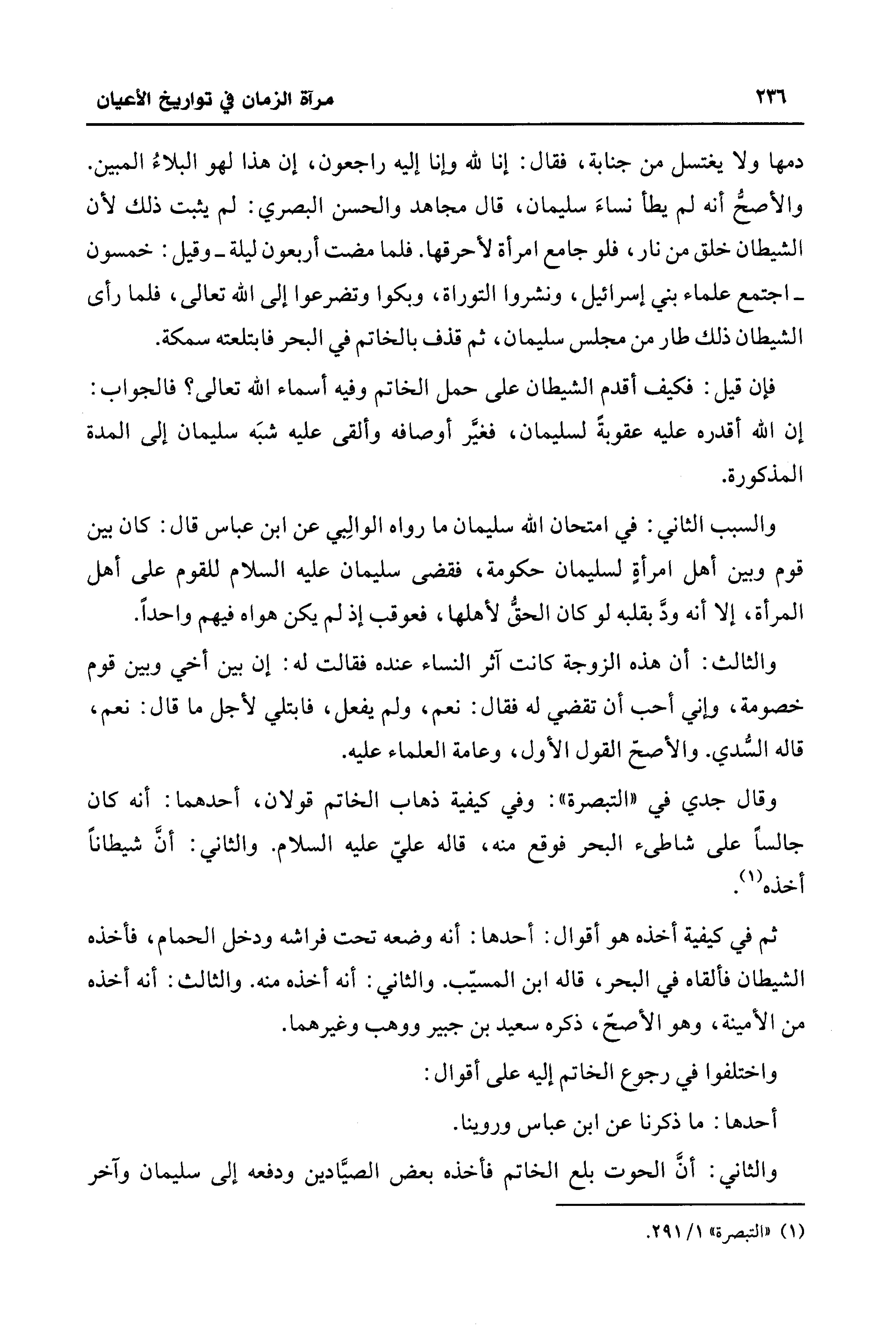 وقال جدي في "التبصرة": وفي كيفية ذهاب الخاتم قولان، أحدهما: أنه كان جالسًا على شاطئ البحر فوقع منه، قاله عليّ عليه السلام. والثاني: أنَّ شيطانًا أخذه (¬1).