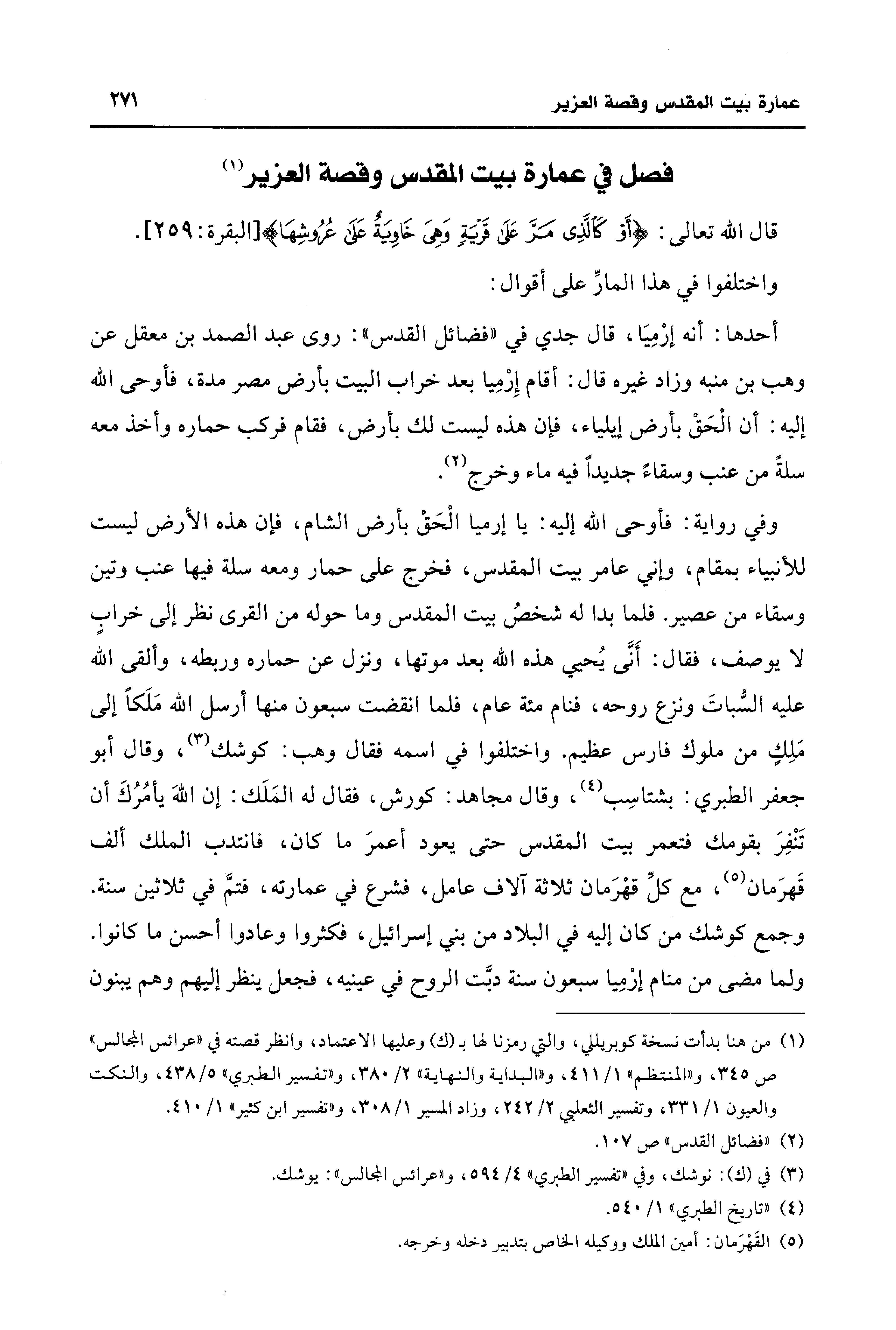فصل في عمارة بيت المقدس وقصة العزير (¬1)