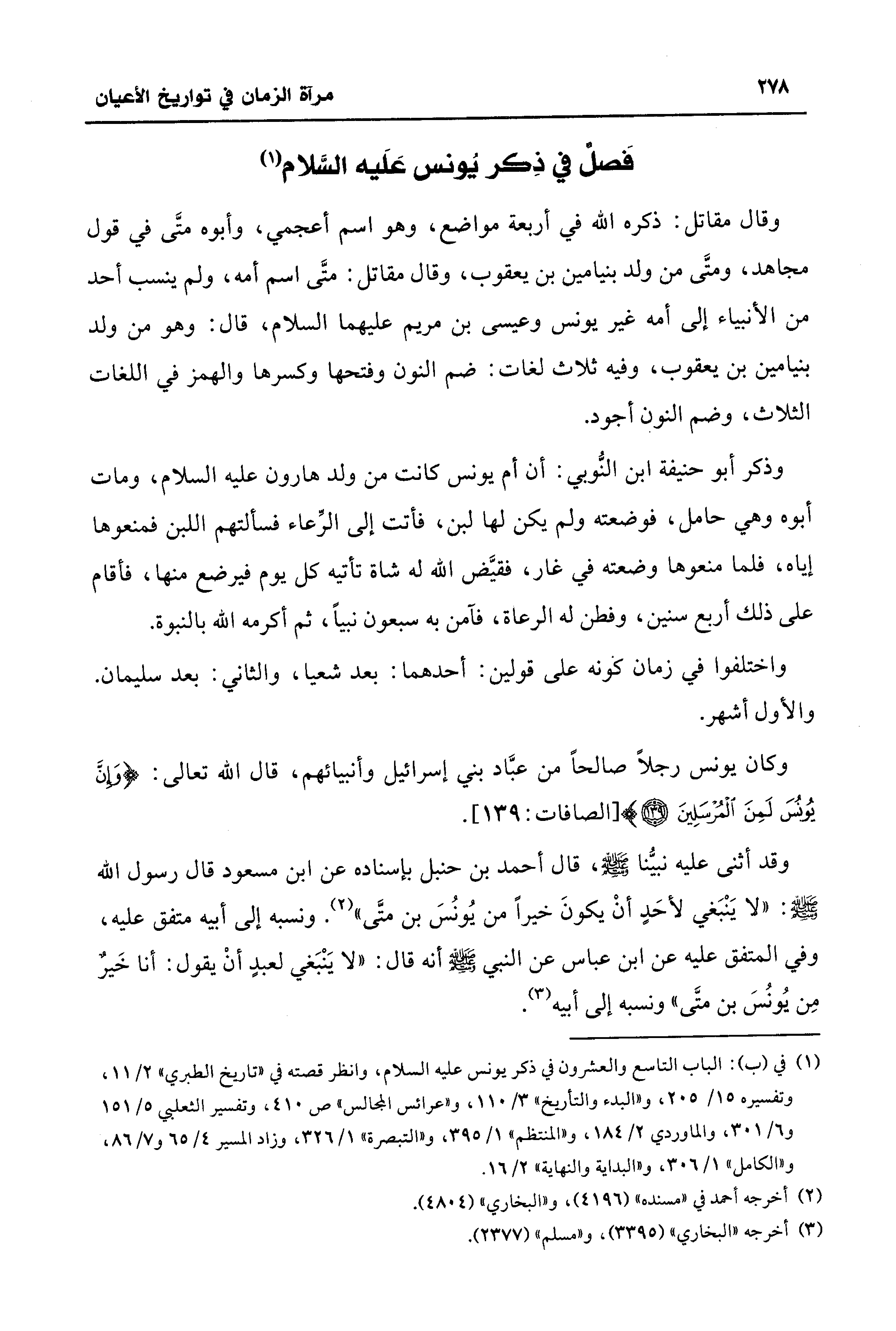وقد أثنى عليه نبيُّنا - صلى الله عليه وسلم -، قال أحمد بن حنبل بإسناده عن ابن مسعود قال رسول الله - صلى الله عليه وسلم -: "لا يَنْبَغي لأحَدٍ أنْ يكونَ خيرًا من يُونُسَ بن متَّى" (¬2). ونسبه إلى أبيه متفق عليه، وفي المتفق عليه عن ابن عباس عن النبي - صلى الله عليه وسلم - أنه قال: "لا يَنْبَغي لعبدٍ أنْ يقول: أنا خَيرٌ مِن يُونُسَ بن متَّى" ونسبه إلى أبيه (¬3).