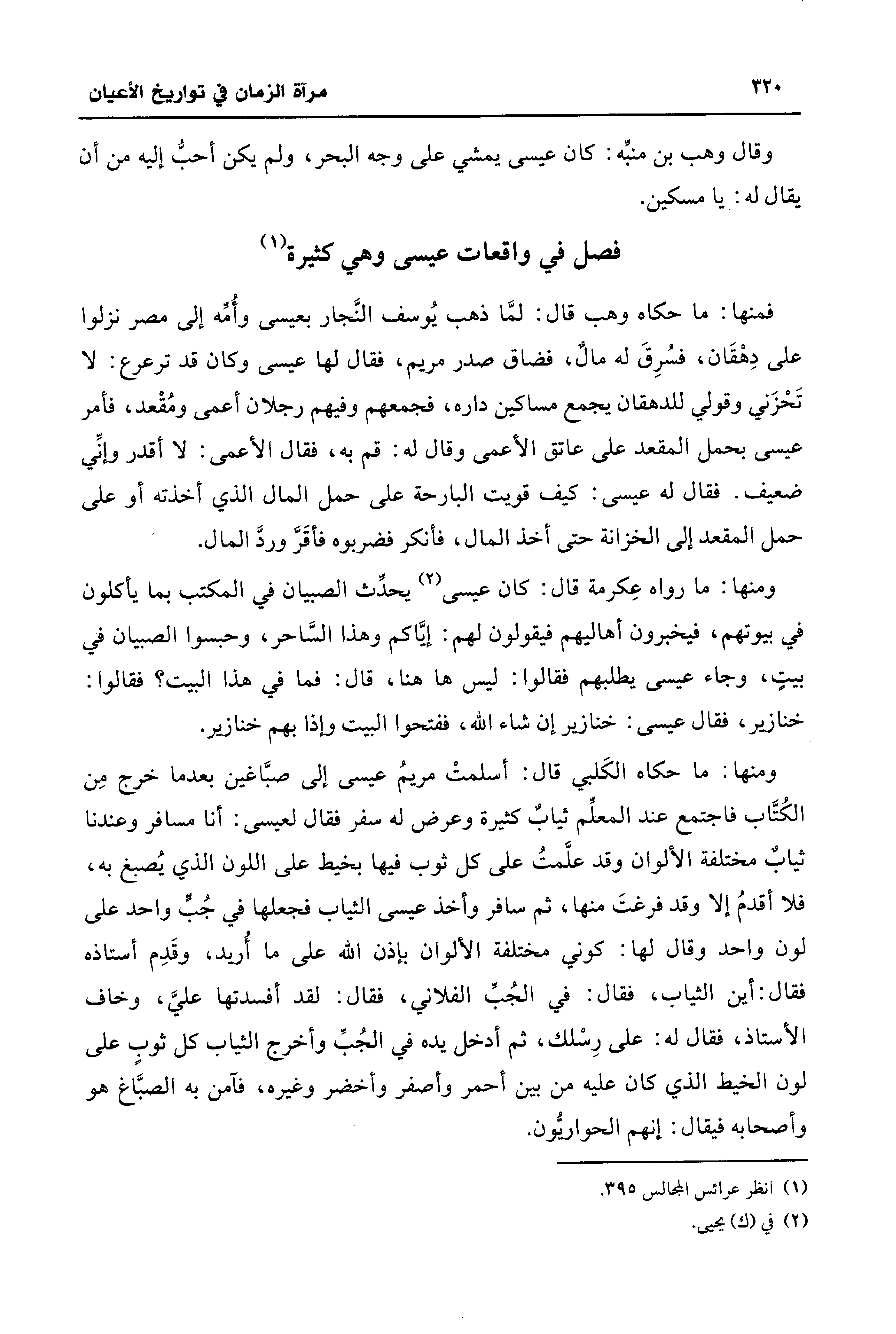 فصل في واقعات عيسى وهي كثيرة (¬1)