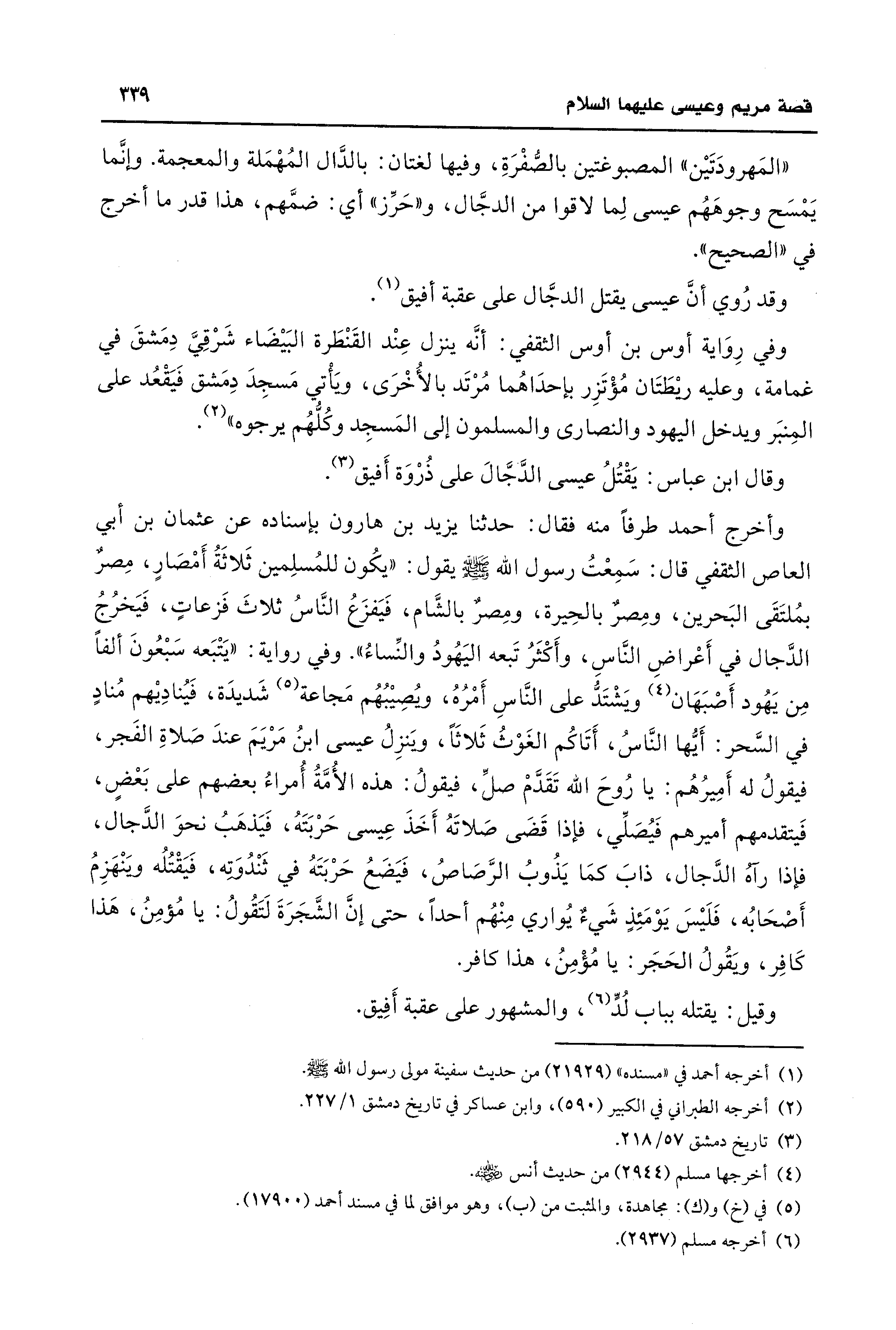 وقيل: يقتله بباب لُدٍّ (¬6)، والمشهور على عقبة أَفِيق.