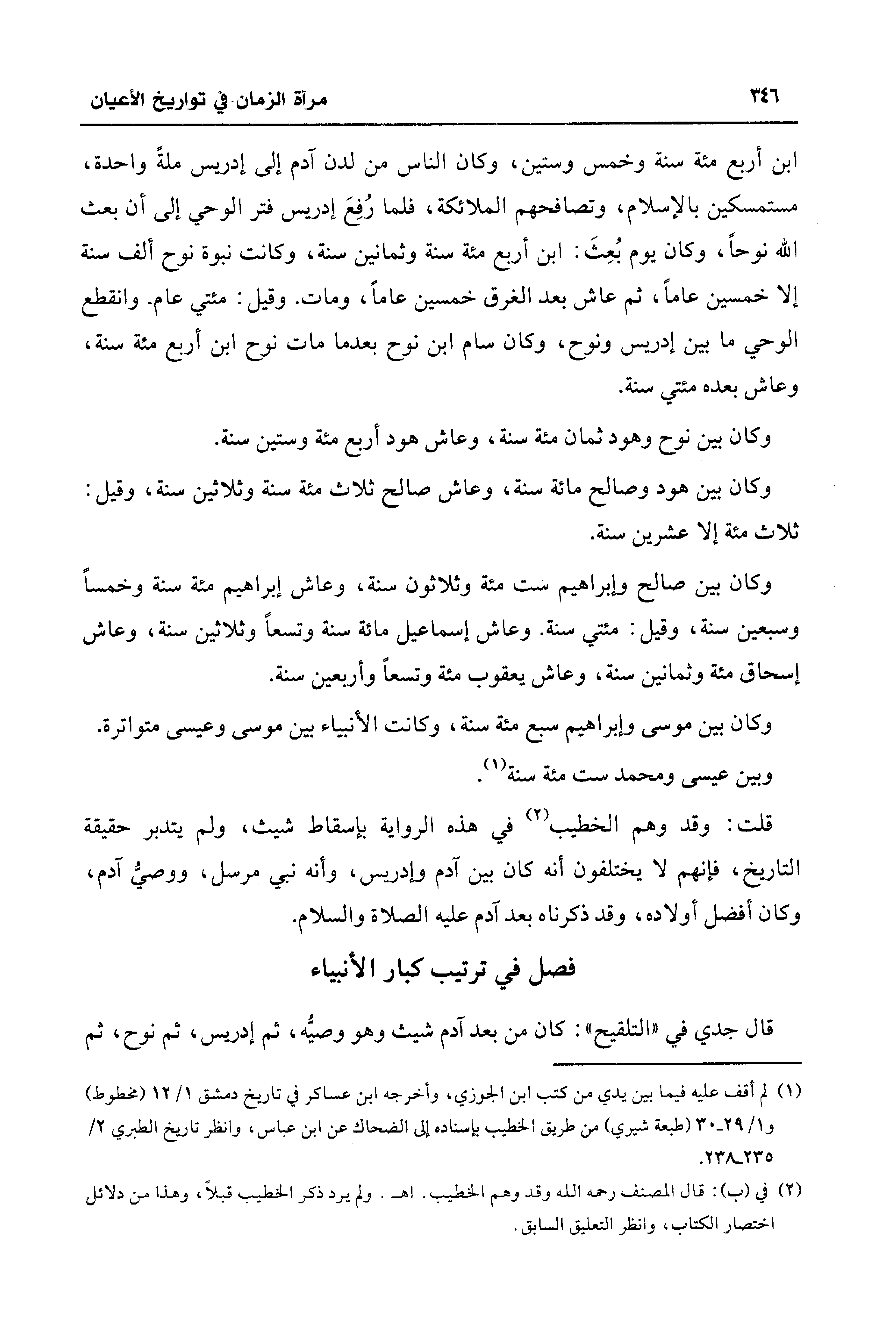 قلت: وقد وهم الخطيب (¬2) في هذه الرواية بإسقاط شيث، ولم يتدبر حقيقة التاريخ، فإنهم لا يختلفون أنه كان بين آدم وإدريس، وأنه نبي مرسل، ووصيُّ آدم، وكان أفضل أولاده، وقد ذكرناه بعد آدم عليه الصلاة والسلام.