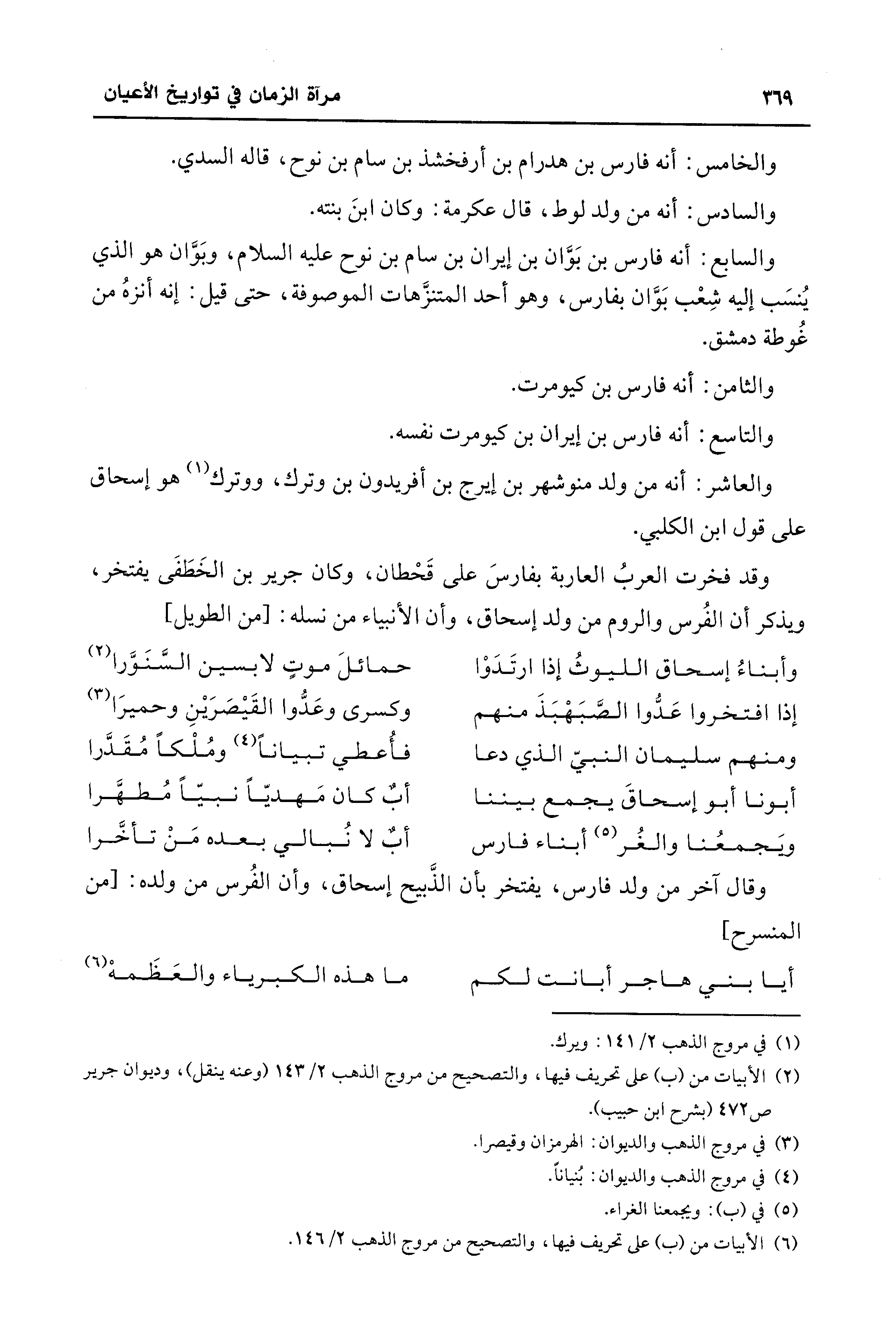(¬6) الأبيات من (ب) على تحريف فيها، والتصحيح من مروج الذهب 2/ 146.