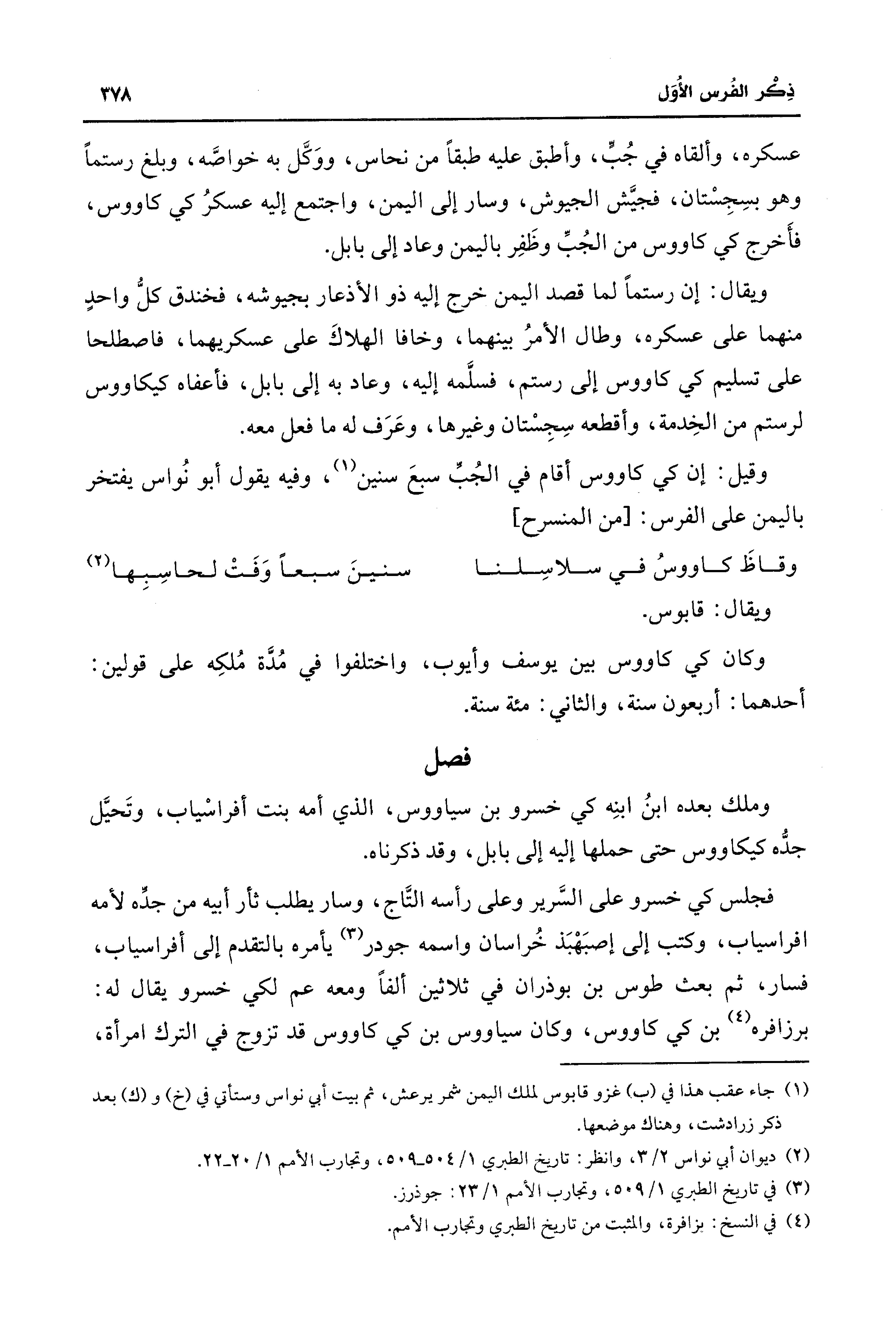 (¬1) جاء عقب هذا في (ب) غزو قابوس لملك اليمن شمر يرعش، ثم بيت أبي نواس وستأتي في (خ) و (ك) بعد ذكر زرادشت، وهناك موضعها.