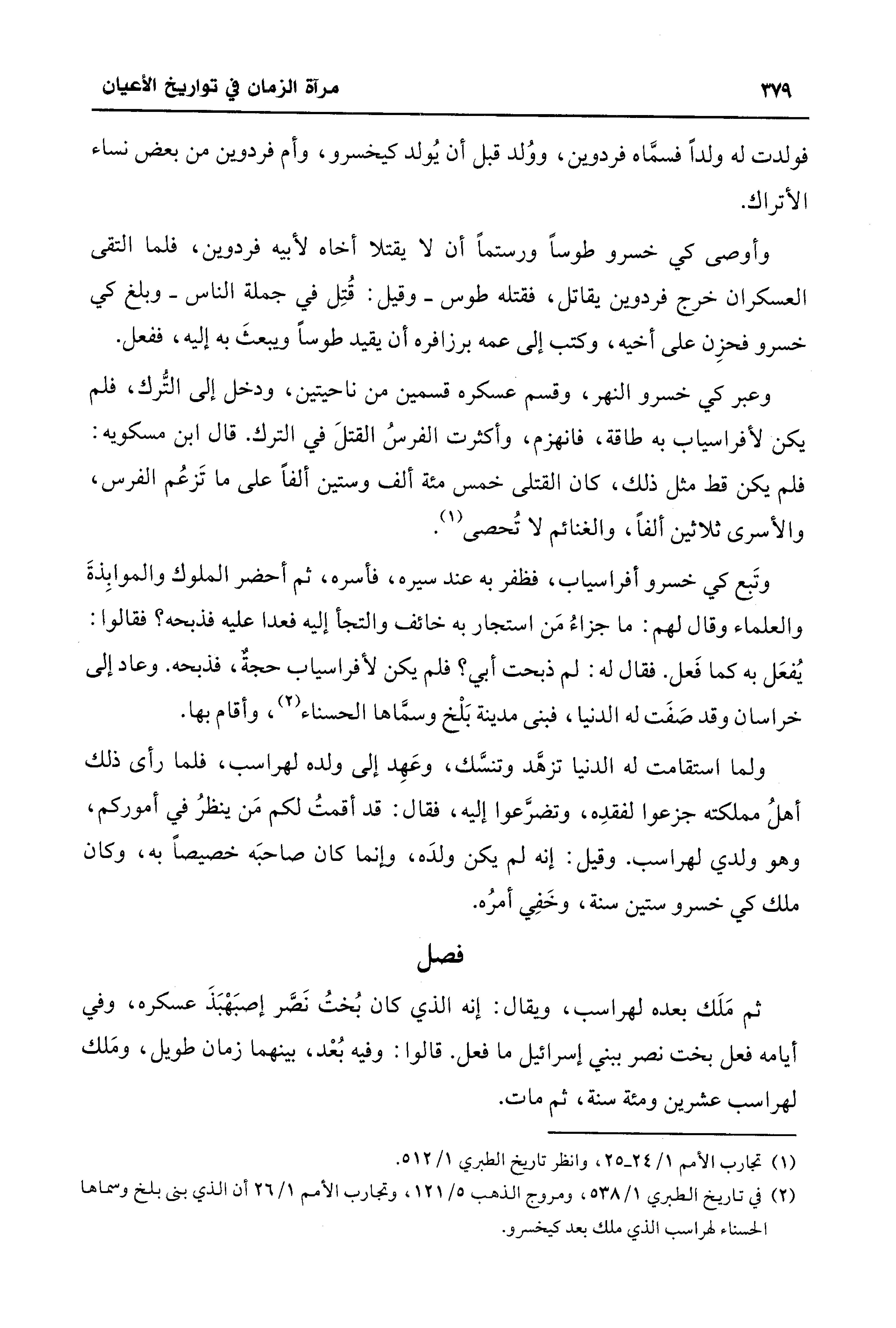 (¬1) تجارب الأمم 1/ 24 - 25، وانظر تاريخ الطبري 1/ 512.