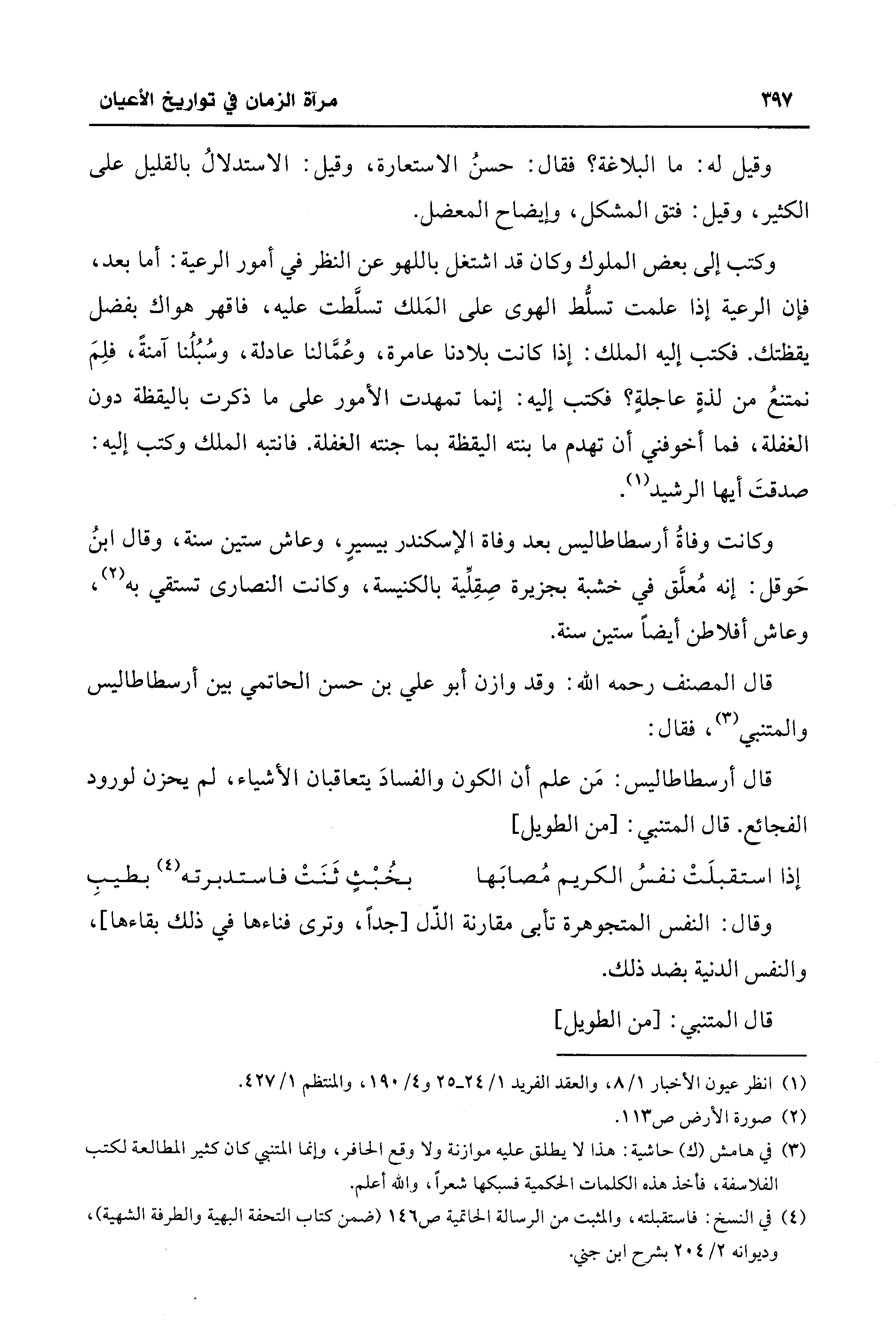 قال المصنف رحمه الله: وقد وازن أبو علي بن حسن الحاتمي بين أرسطاطاليس والمتنبي (¬3)، فقال: