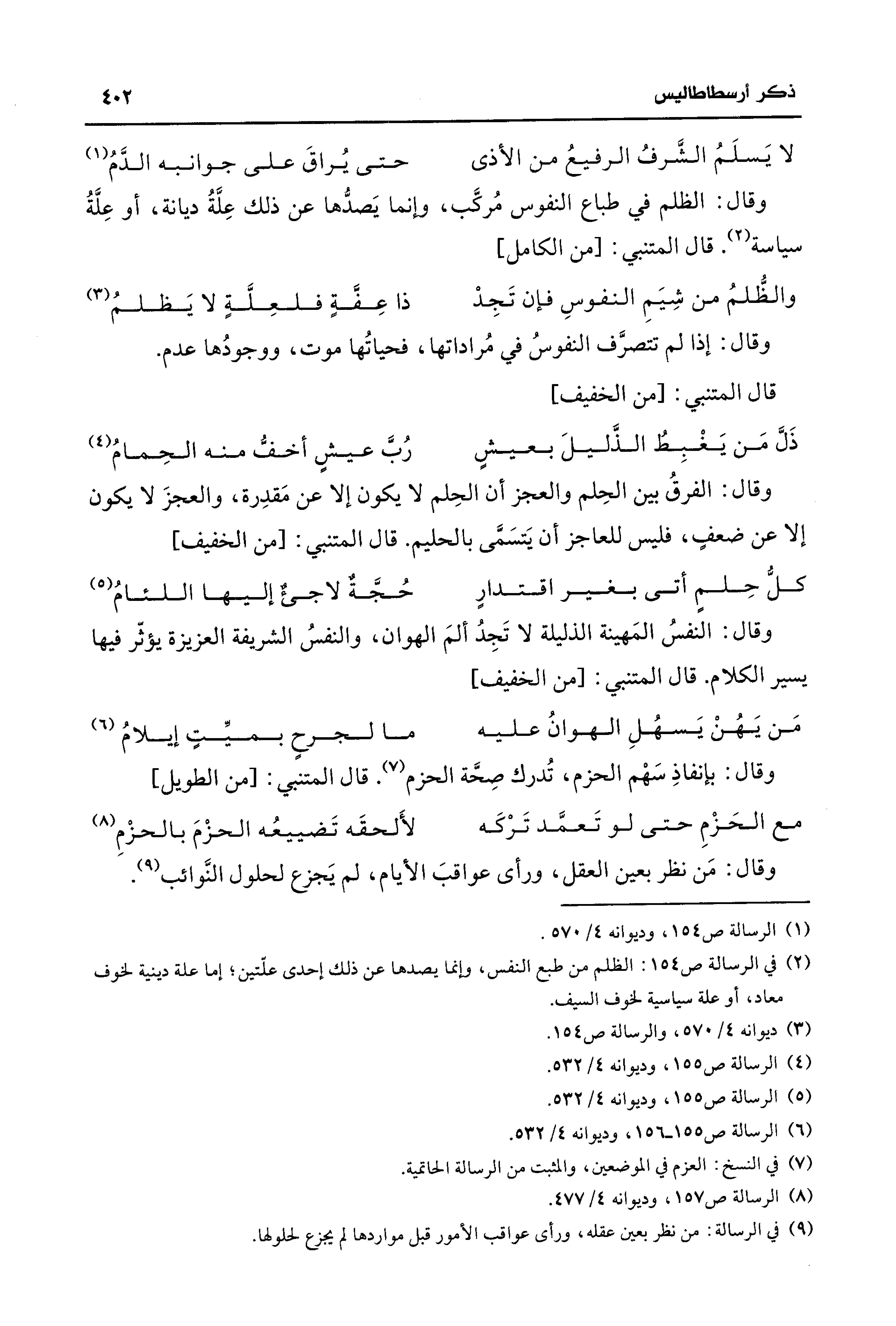 (¬8) الرسالة ص 157، وديوانه 4/ 477.