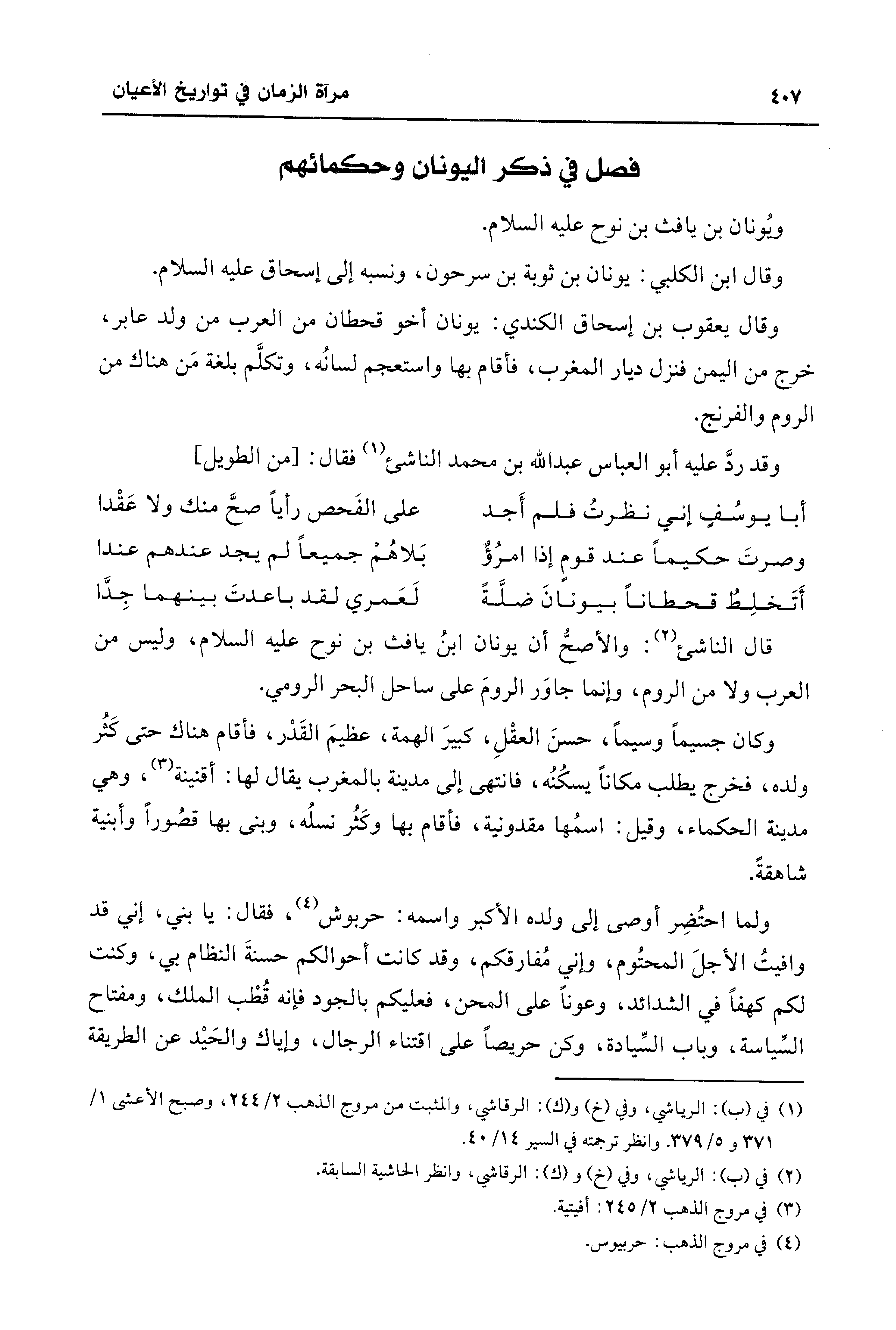 قال الناشئ (¬2): والأصحُّ أن يونان ابنُ يافث بن نوح عليه السلام، وليس من العرب ولا من الروم، وإنما جاوَر الرومَ على ساحل البحر الرومي.